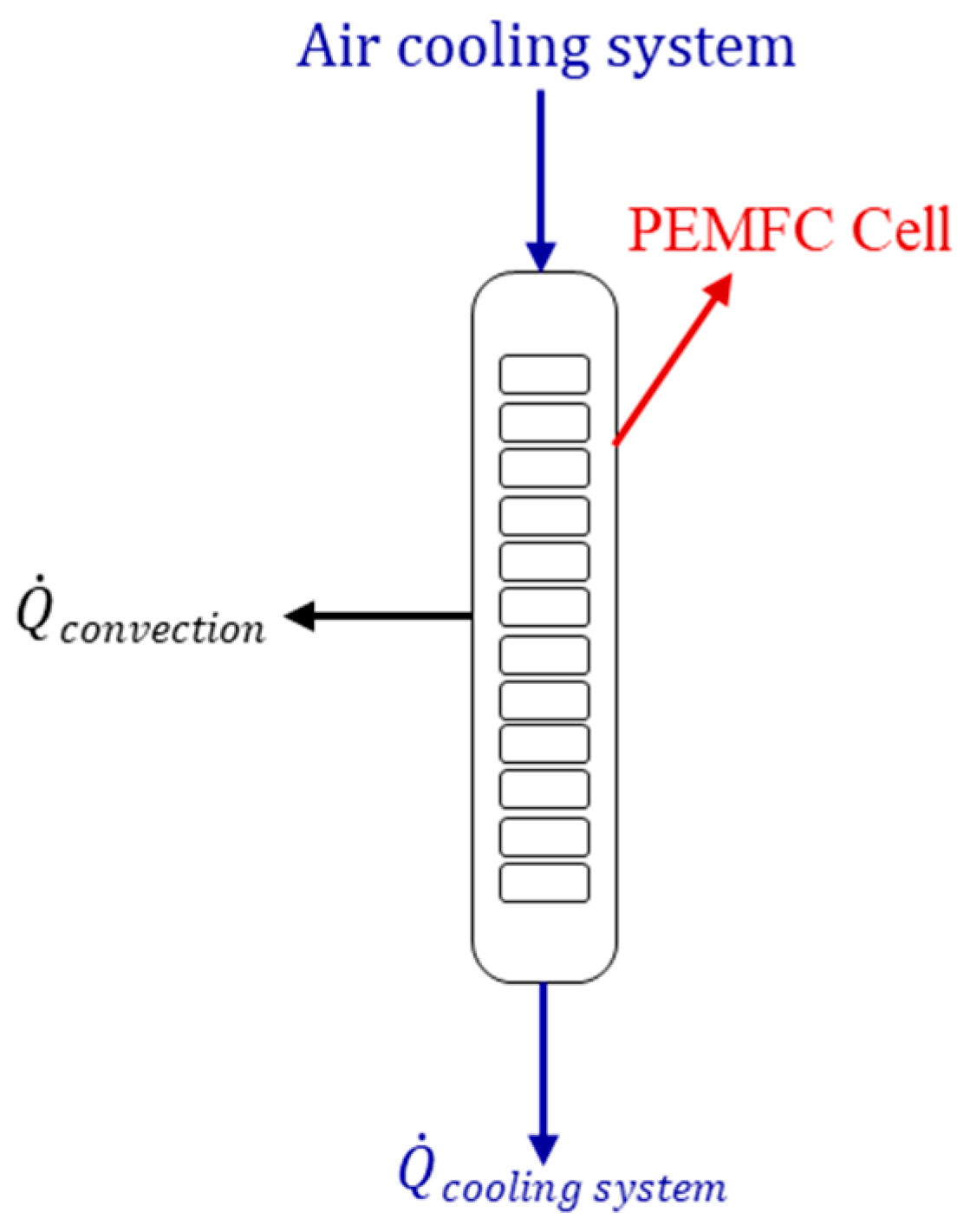 - Yakubu, A.U.; Zhao, J.; Jiang, Q.; Ye, X.; Liu, J.; Yu, Q.; Xiong, S. A comprehensive review of primary cooling techniques and thermal management strategies for polymer electrolyte membrane fuel cells PEMFC. Heliyon 2024, 10, e38556. [Google Scholar] [CrossRef]