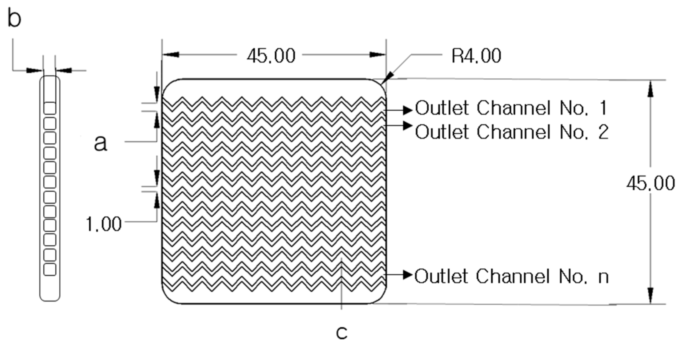 | Type 4 | a = 2, b = 2, h = 2 | 75/90/120 | Improved thermal uniformity | Stronger secondary flows | Higher area-specific heat removal | Good balance |