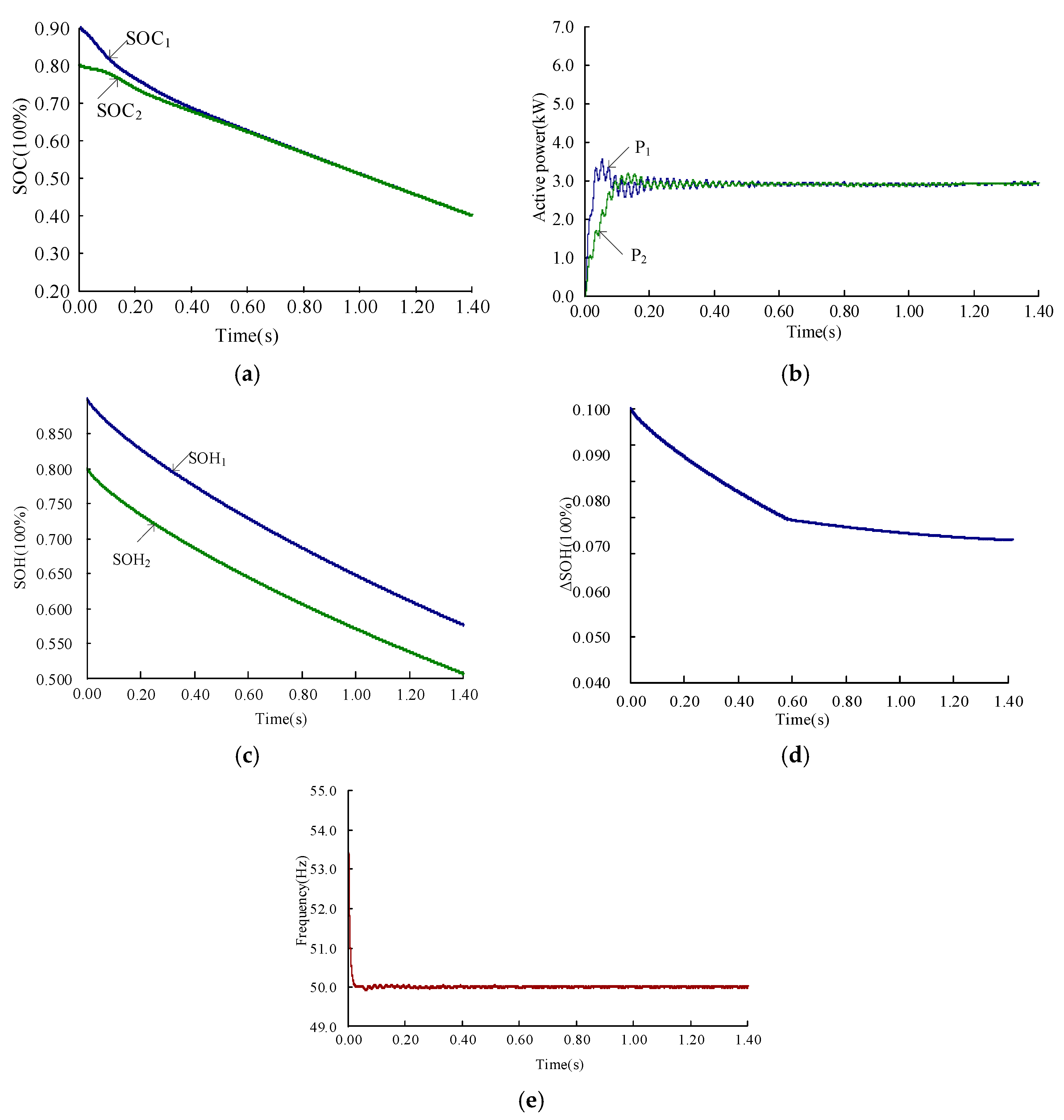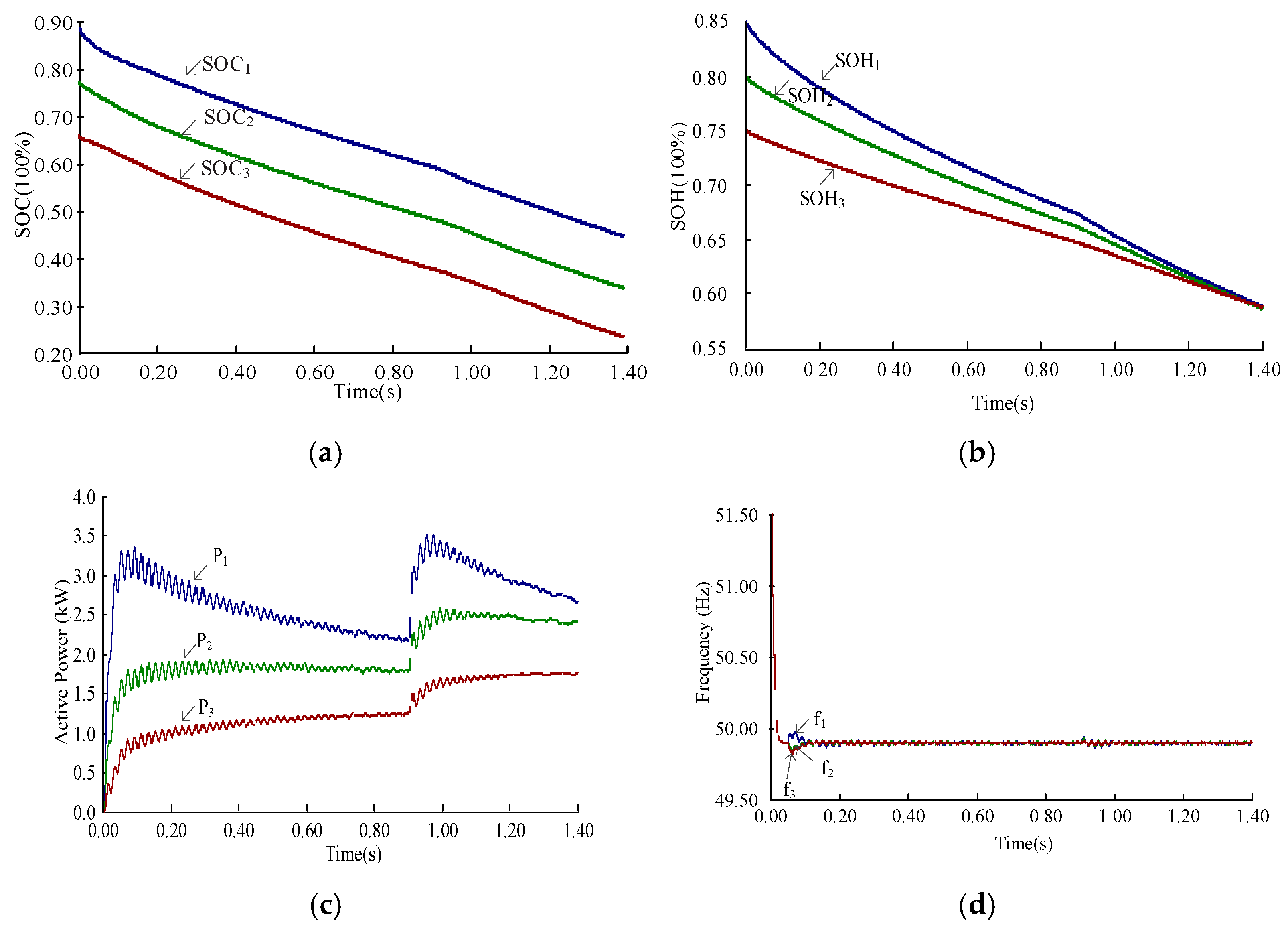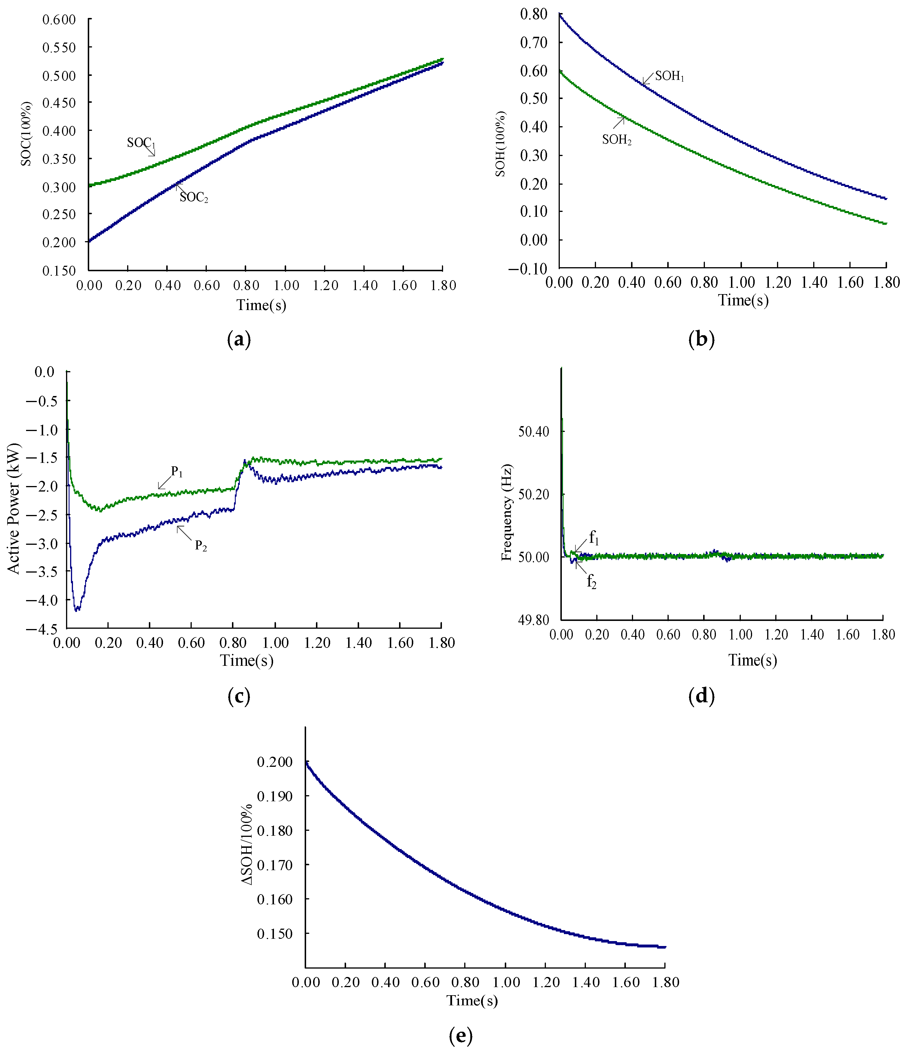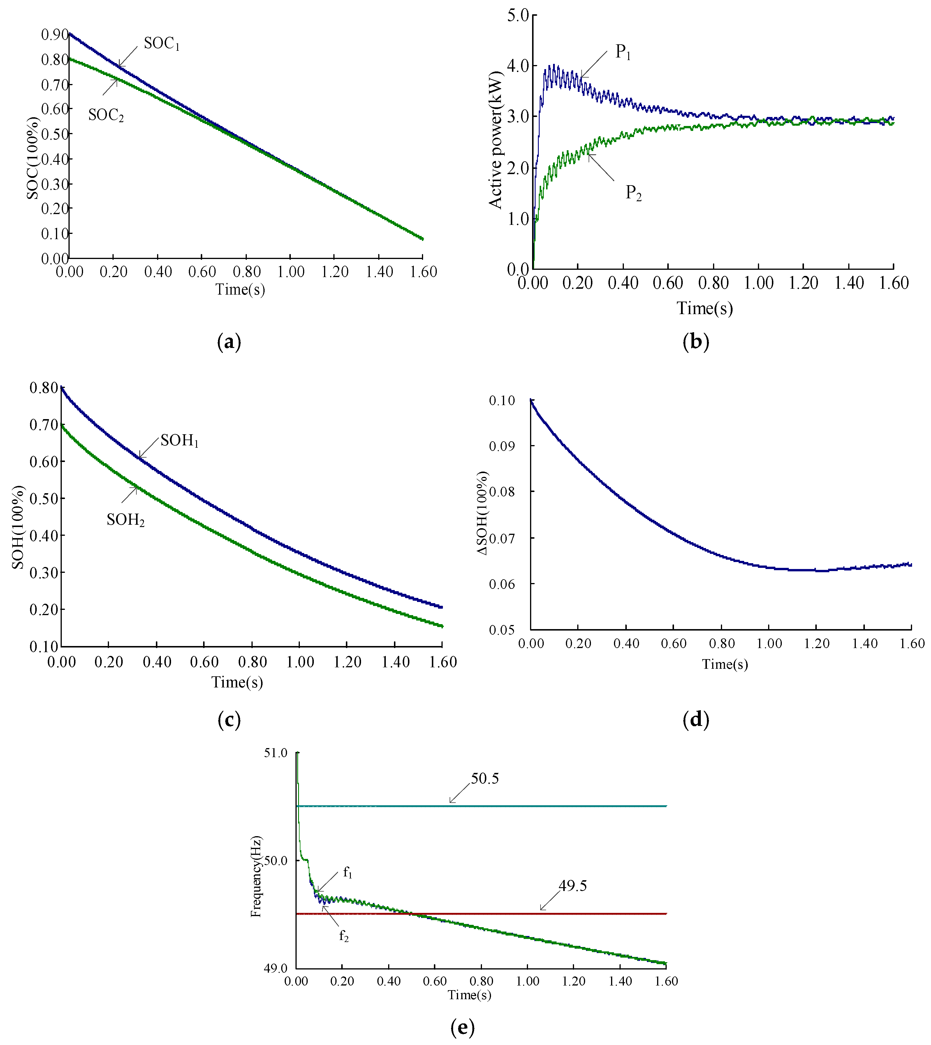 - The proposed solution adjusts the active power of LBESS inverters based on the SOH and SOC states. It not only achieves SOC balancing but also reduces the SOH balancing errors, thereby overcoming the limitations associated with large SOH balancing discrepancies in traditional P-f droop control and SOC balancing strategies.