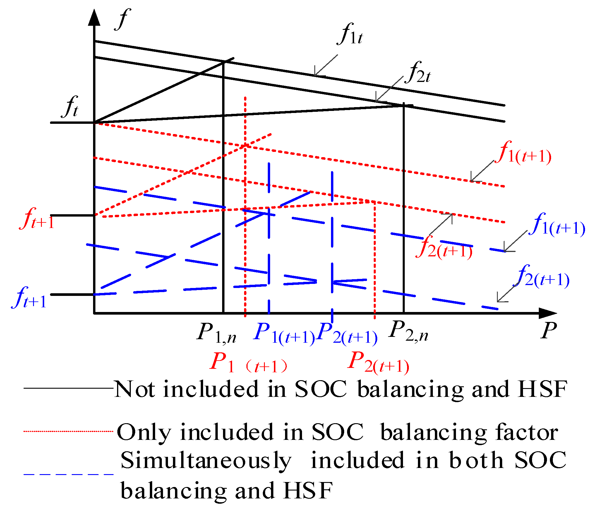 - The SOC balancing factors and HSF of the proposed solution gradually decrease during the SOC balancing process. After SOC balancing, the SOC balancing factors and HSF reduce to 0, thereby avoiding frequency deviation issues.