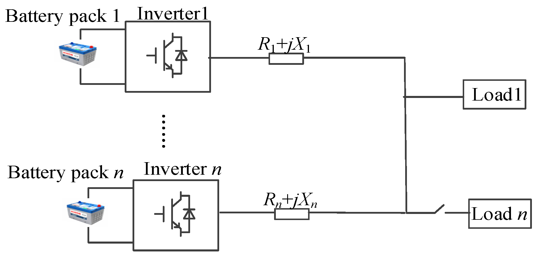 - Wang, C.; Zhang, Q.; Han, L. A Novel Construction Method and Control Strategy of Modular Battery Energy Storage Systems Based on Improved Droop Control. IEEE Trans. Power Electron. 2025, 40, 11490–11508. [Google Scholar] [CrossRef]