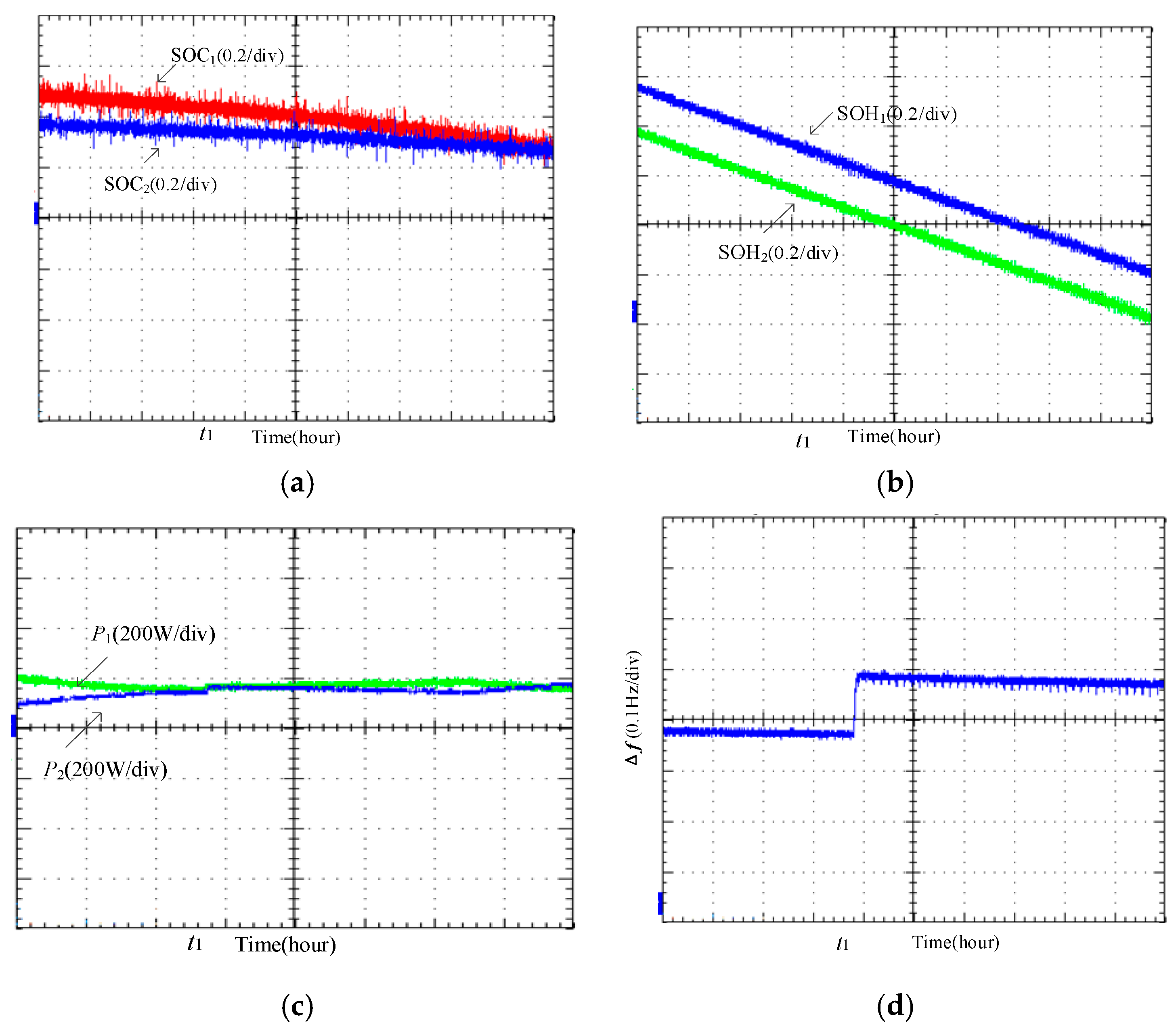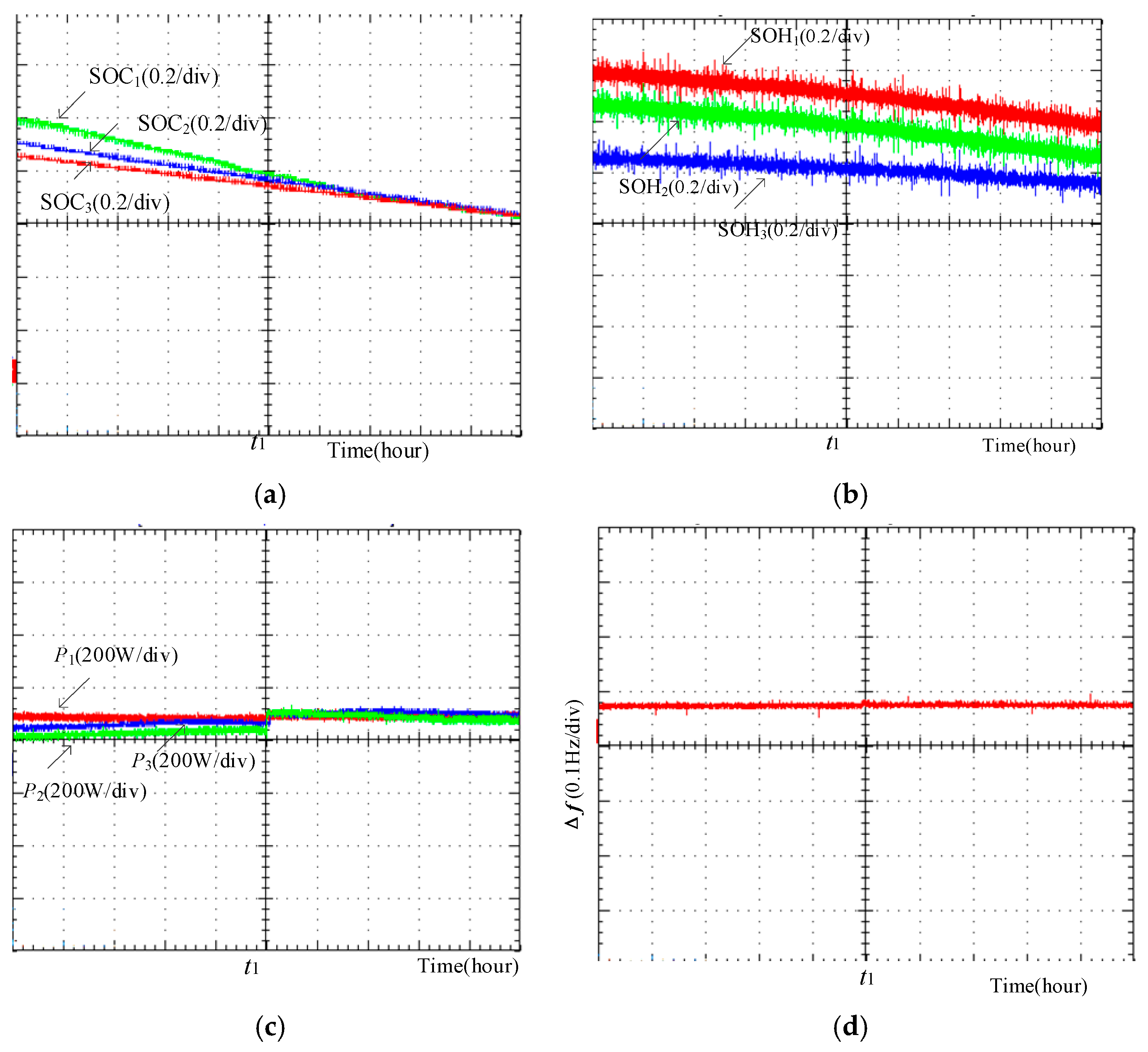 7.1. Experimental Analysis of SOC Balancing Control Scheme Based on Droop Control