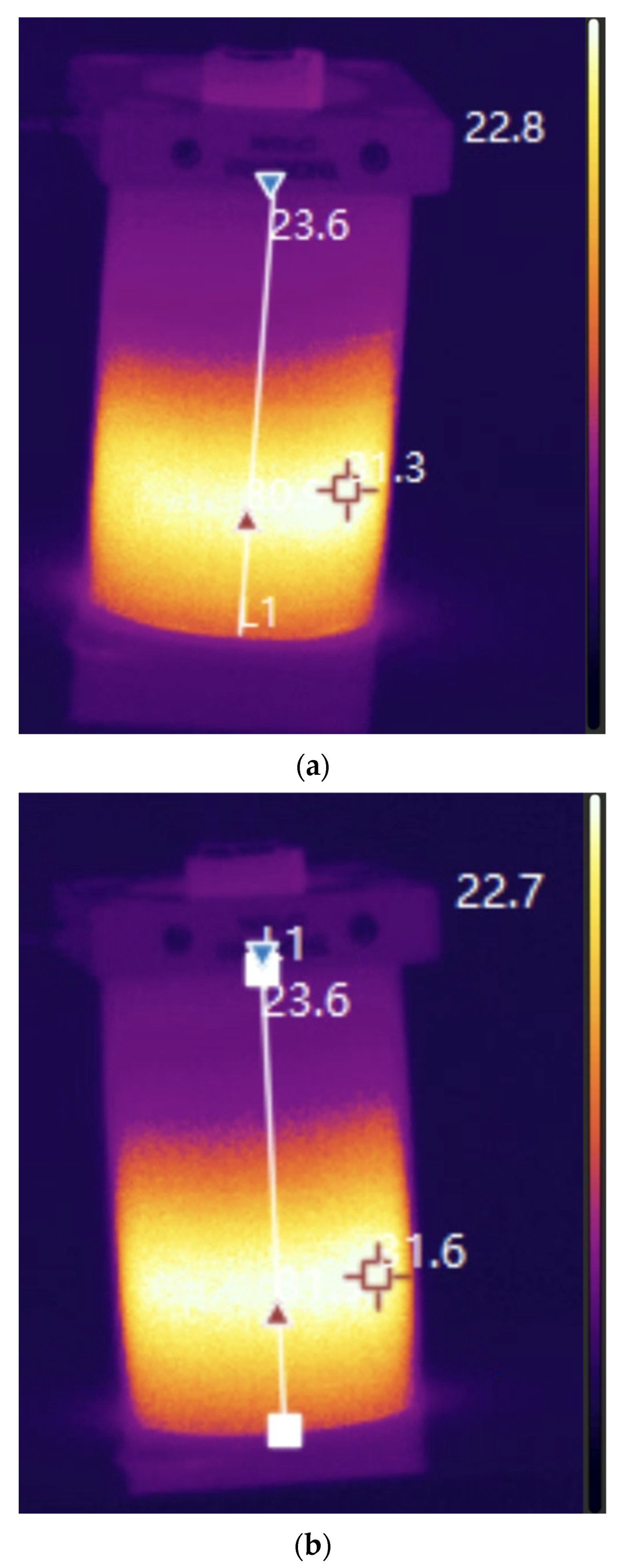 The selection of materials used in the present study was guided by both physical considerations and experimental constraints. In particular, the heat source base materials were chosen to represent contrasting thermal management strategies rather than to identify a single optimal solution. As summarized in Table 2, aluminum and PDMS exhibit strongly differing thermal conductivities, equal to 205 W·m−1·K−1 and 0.11 W·m−1·K−1, respectively. Aluminum promotes rapid lateral heat spreading within the base, leading to stronger coupling with buoyancy-driven convection and enhanced heat redistribution toward the chamber walls. In contrast, PDMS limits lateral heat diffusion and favors localized heat accumulation in the vicinity of the AuNR-coated surface, thereby promoting thermal storage and higher local temperatures.