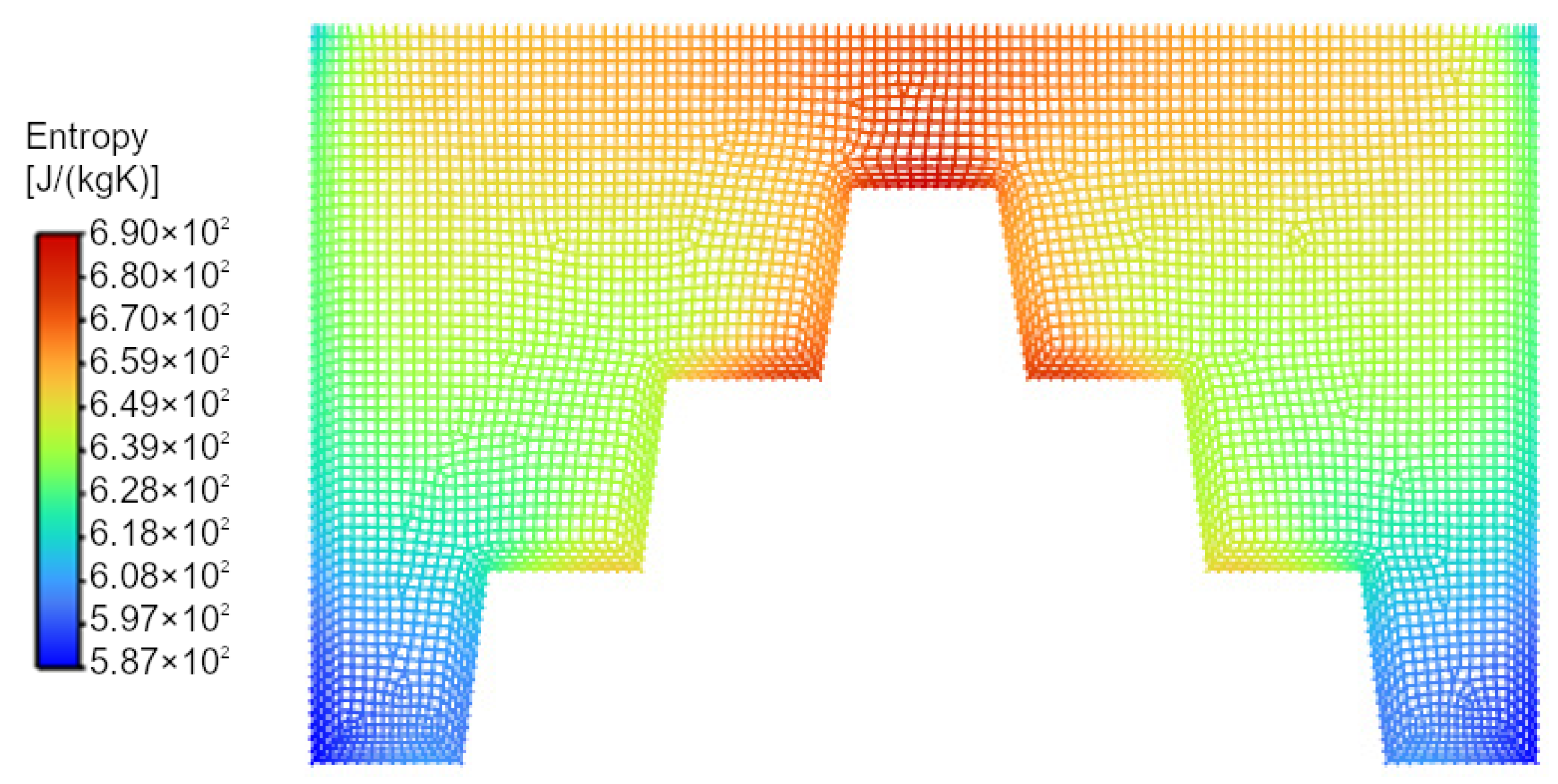 Figure 18. Entropy contours for the configuration with a gradually ascending stepped structure, using AuNRs with an aspect ratio of 15/65 and a PETG base.