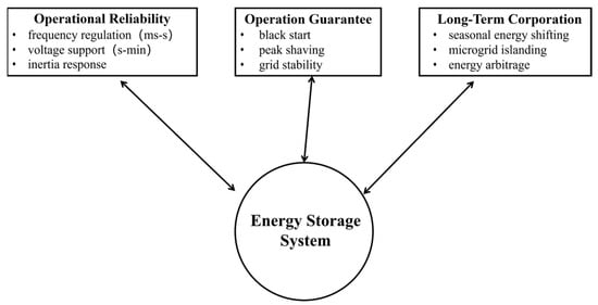 Table 2 summarizes the diverse storage requirements within the systems. As illustrated in Figure 4, these requirements can be broadly classified into three core application categories: power regulation, operational support, and long-duration coordination. Each category emphasizes different technical aspects, resulting in varying demands on storage technologies in terms of response speed, energy density, and sustained energy delivery capabilities. Therefore, the selection of appropriate storage technologies must carefully consider their suitability for specific application scenarios to achieve an optimal balance between performance and cost-effectiveness.