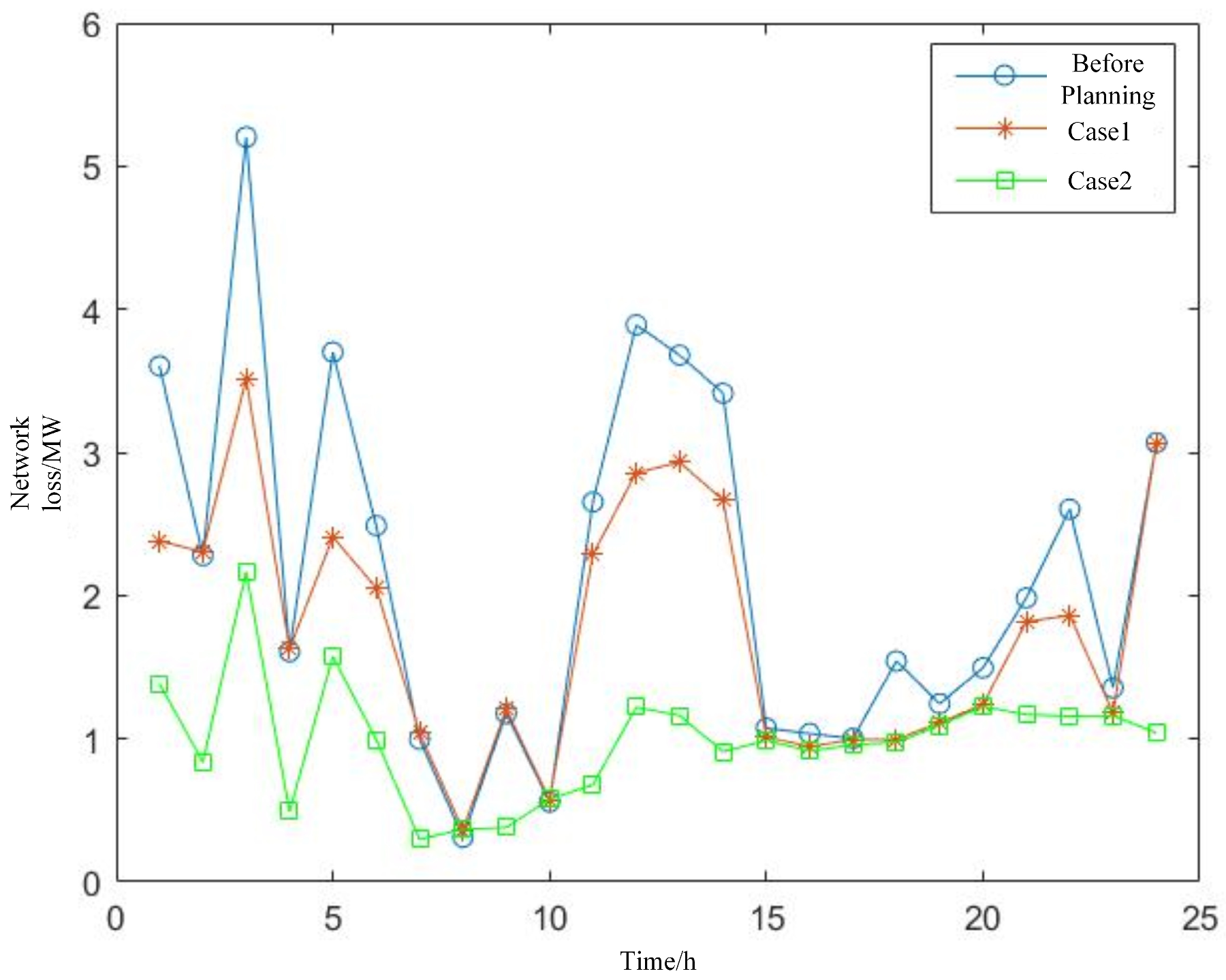 - The effectiveness of the proposed coordinated partitioning and ESS configuration method is validated through a case study on a typical multi-substation, multi-feeder distribution network. Simulation results demonstrate that the proposed approach can effectively reduce network losses, improve voltage profiles, and enhance local energy autonomy while achieving improved economic performance.