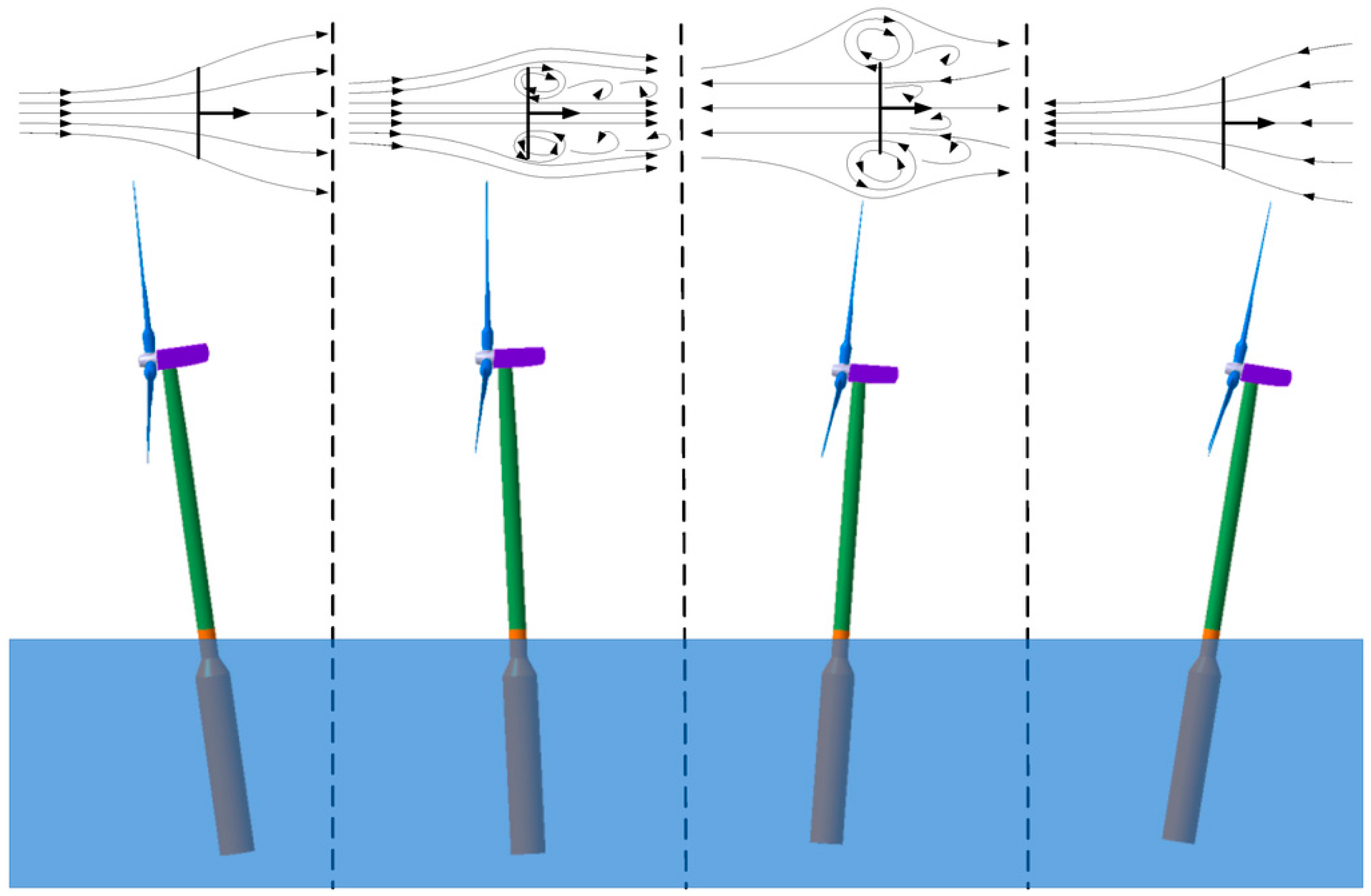 | BEM | Combines blade element theory with momentum theory | Routine design and loads assessment | High computational efficiency; suitable for optimization | Relies on empirical corrections; struggles with highly unsteady conditions during large platform motions |
