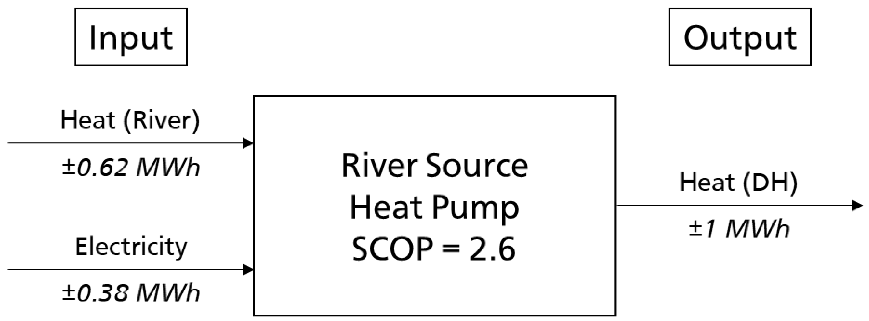 - MVV Energie AG. Flusswärmepumpe 1. 2025. Available online: https://www.mvv.de/ueber-uns/unternehmensgruppe/mvv-umwelt/aktuelle-projekte/flusswaermepumpen/flusswaermepumpe-1 (accessed on 25 October 2025).