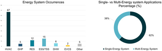 Modern buildings consist of multiple Energy Systems—such subsystems account for most of a building’s energy use and strongly influence both operating costs and occupant comfort [53]. The most common equipment found in the building level may concern [24] (See also Figure 5):