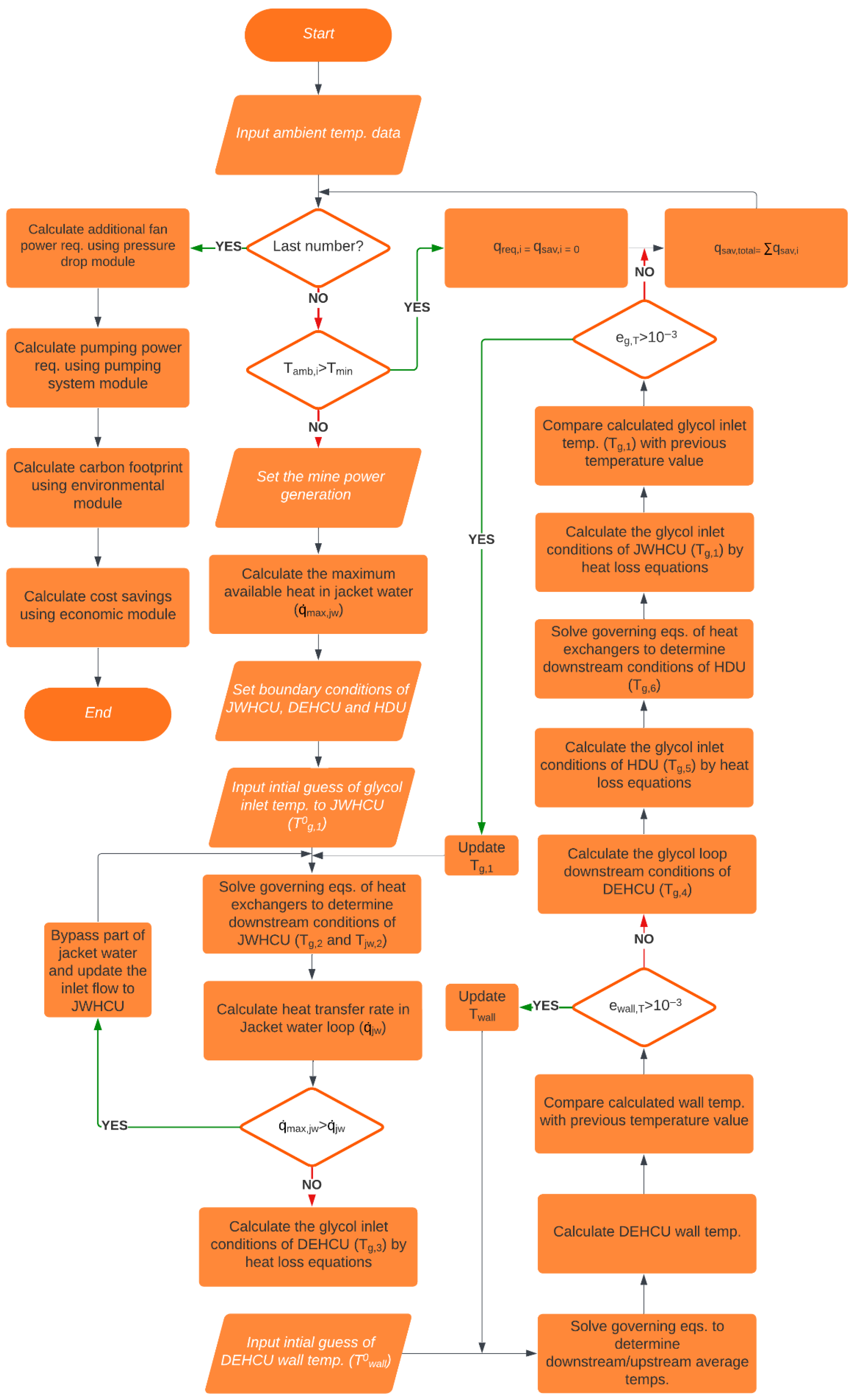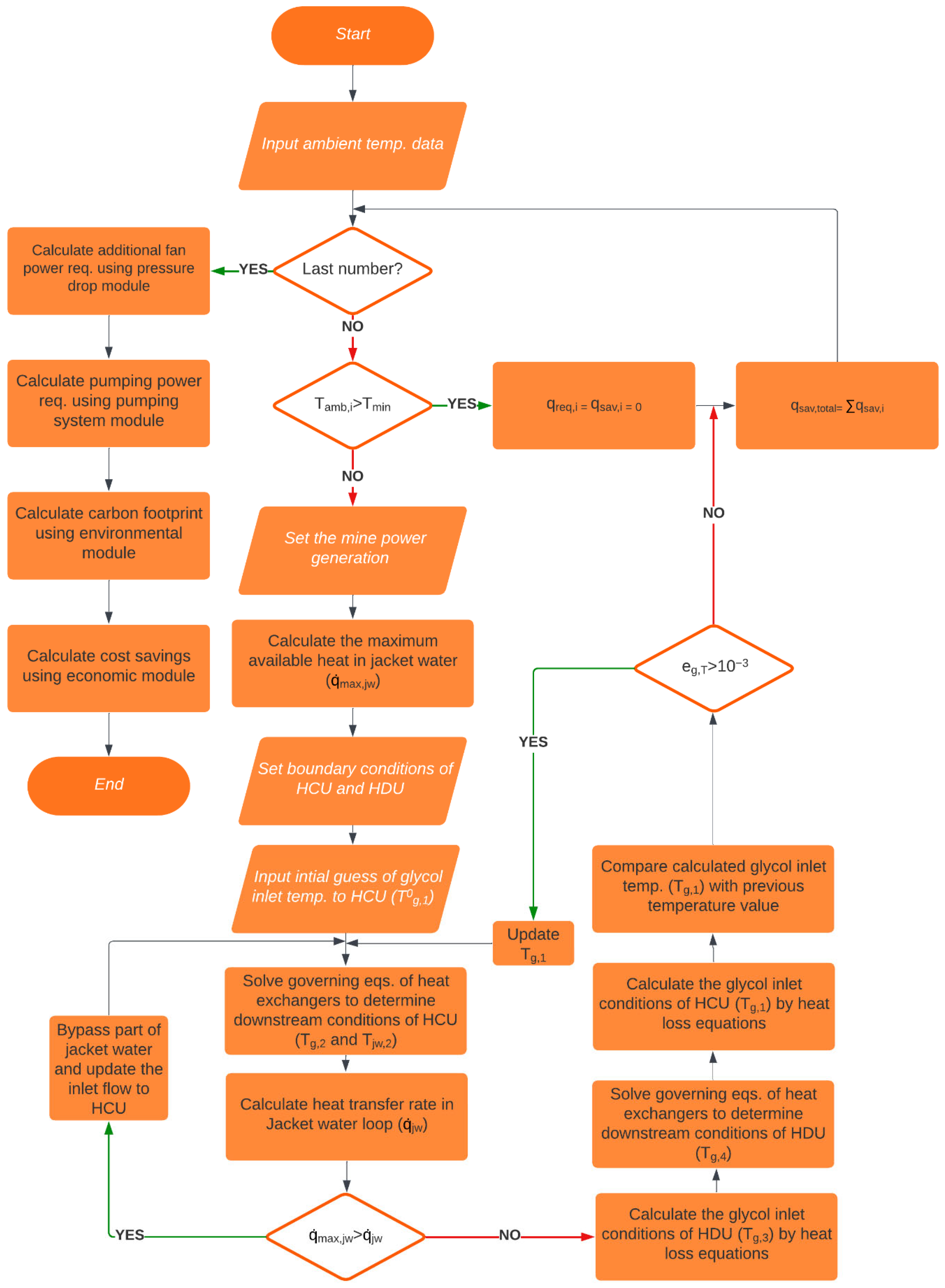 Figure 3 shows the flow diagram of the custom code, which solves the system performance using mine airflow requirements, exhaust-air properties (dry- and wet-bulb), and a time series of outside air temperature (daily, hourly, or 10-min resolution).