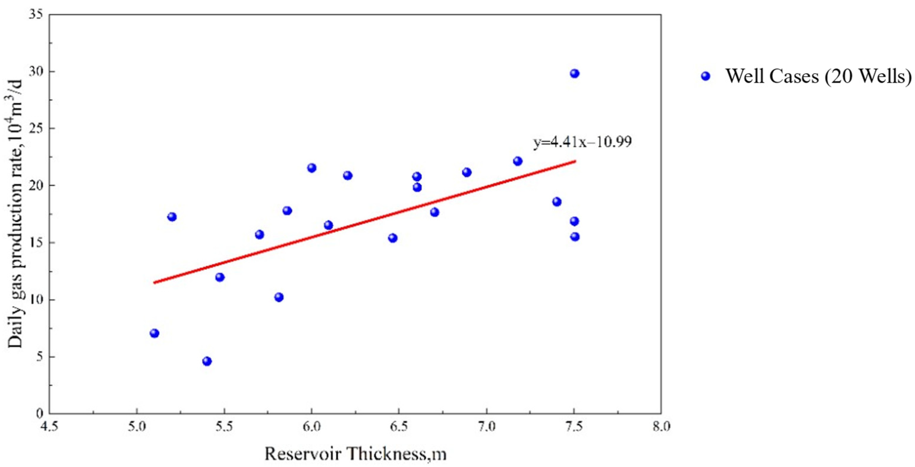 is the reservoir thickness, m; and