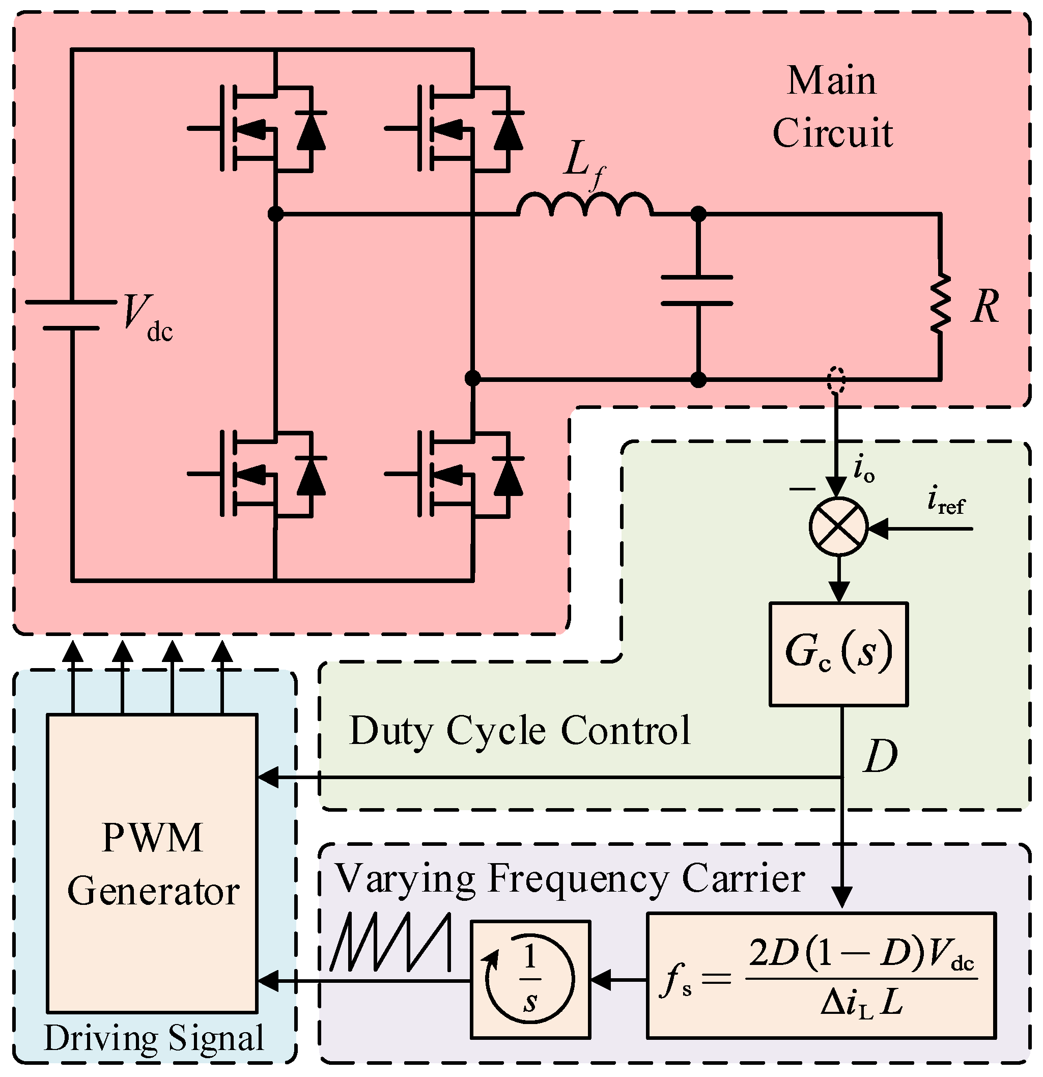 27]. While the multi-frequency modeling framework is theoretically capable of capturing these dynamics, existing research has predominantly focused on its application to fixed-frequency inverters. Consequently, the specific implementation of this methodology for variable-frequency inverters—particularly for TCM, where the switching frequency is inherently coupled with the duty cycle—remains a gap in the current literature.
