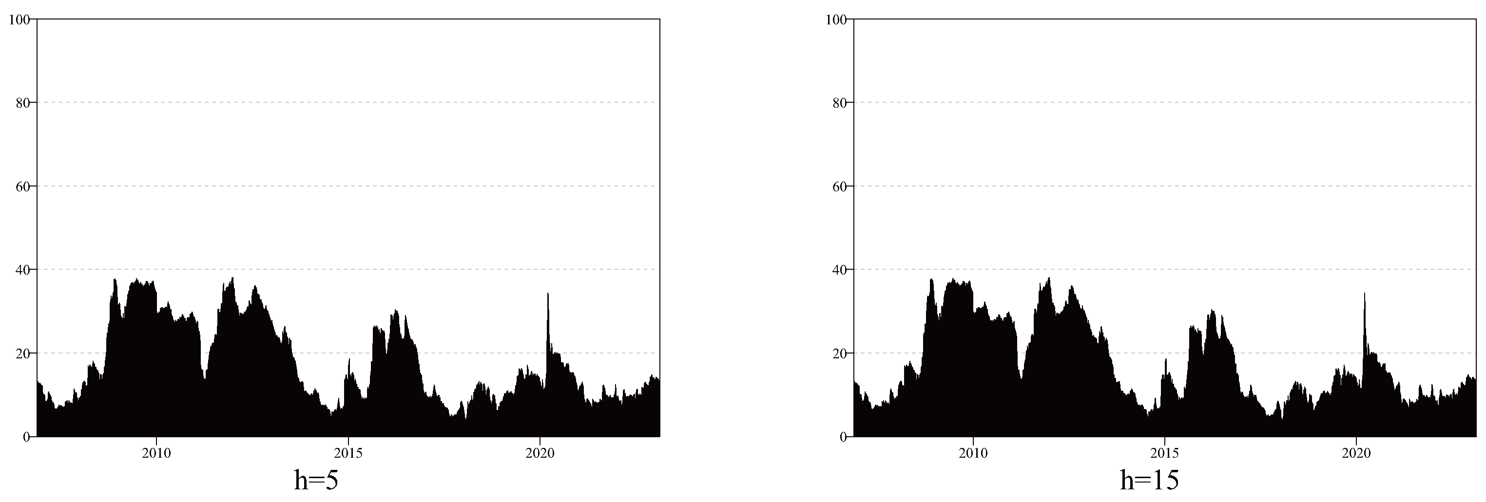 Figure 7 display the corresponding results. The results indicate that adjusting the forecast horizon or modifying the lag orders does not significantly change the magnitude or the trend of the time-varying total spillover effects, thereby confirming the robustness and reliability of the empirical results.