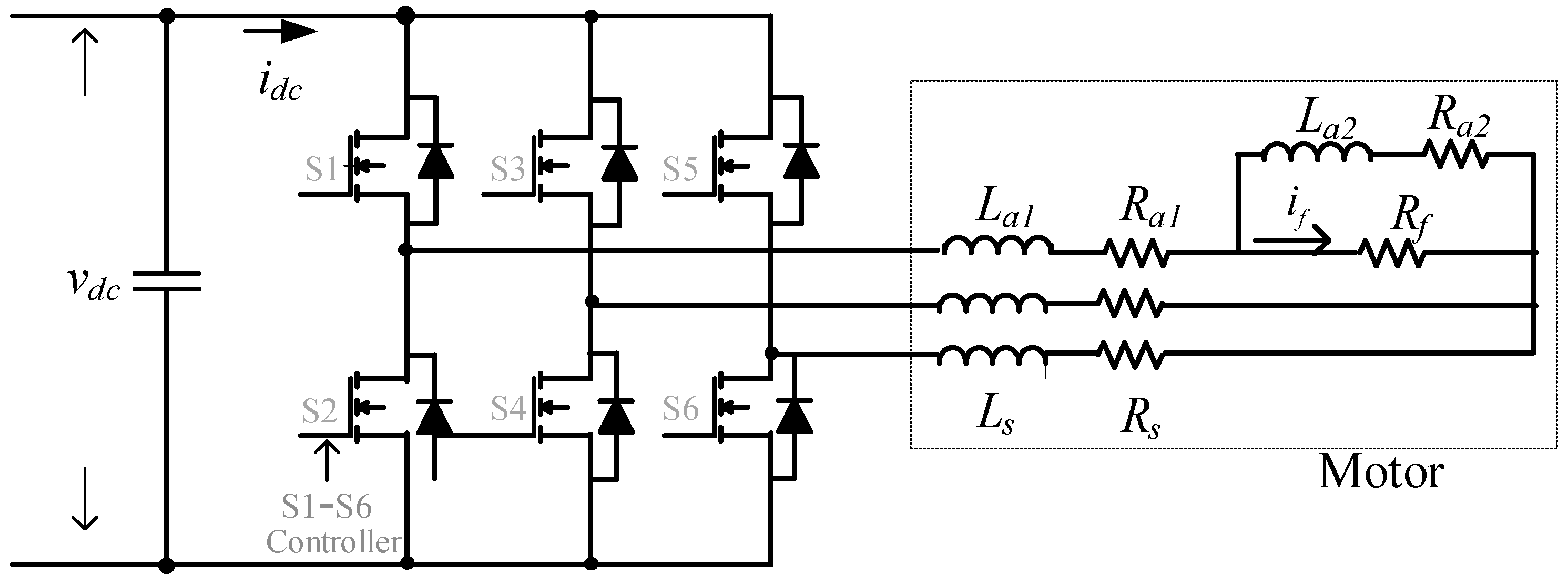 can be neglected. As a result, during an inter-turn short-circuit fault in the motor, the electromagnetic torque pulsation will induce an additional second harmonic component in the DC link current. Hence, the amplitude of this harmonic current can be used as an indicator for detecting inter-turn short-circuit faults in the motor windings.
