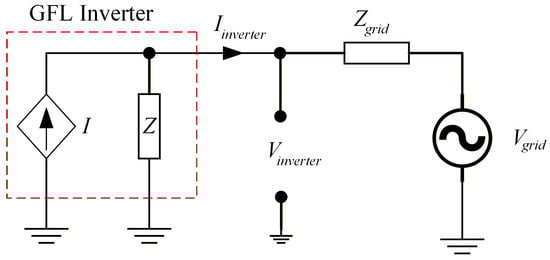 GFL inverters are power electronic inverters that operate as controlled current sources, as shown in Figure 3. The output of GFL inverters totally depends on the grid reference voltage and it became synchronized with it by extracting the grid voltage phase angle using Phase-Locked Loops (PLLs) assisting them to inject current into the grid system. These inverters work by assuming a stable grid voltage when they are integrated with renewable energy resources. But, due to the increase in the implementation of inverter-based resources, the grid voltage stability decreases, possibly leading to a reduction in the inverters stability [15,16]. The major constraints of GFL inverters are relying on grid voltage for synchronization, their efficiency decline, especially in weak grids, and that they may face instability with high renewable energy integration [8].