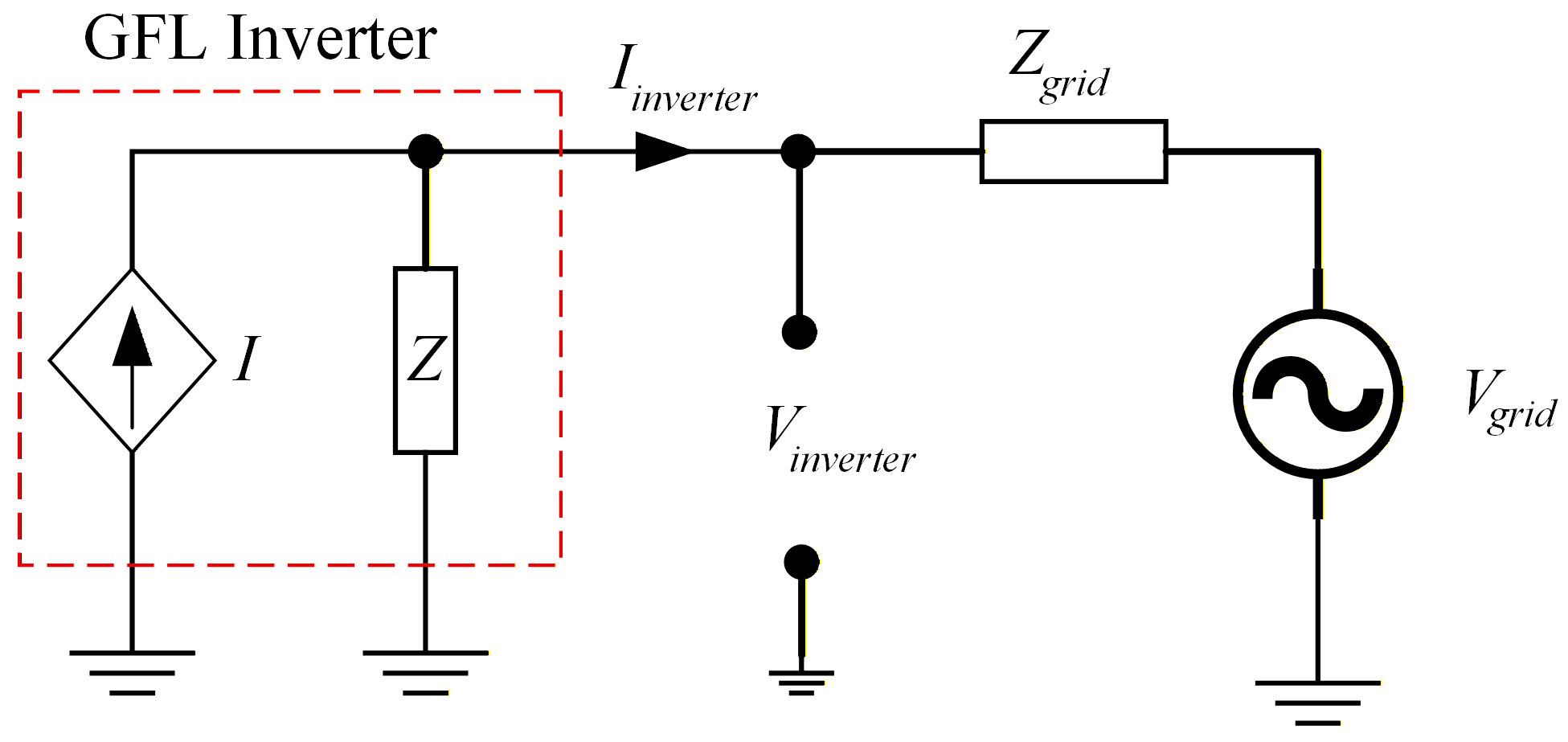 - Du, W.; Tuffner, F.K.; Schneider, K.P.; Lasseter, R.H.; Xie, J.; Chen, Z.; Bhattarai, B. Modeling of grid-forming and grid-following inverters for dynamic simulation of large-scale distribution systems. IEEE Trans. Power Deliv. 2020, 36, 2035–2045. [Google Scholar] [CrossRef]