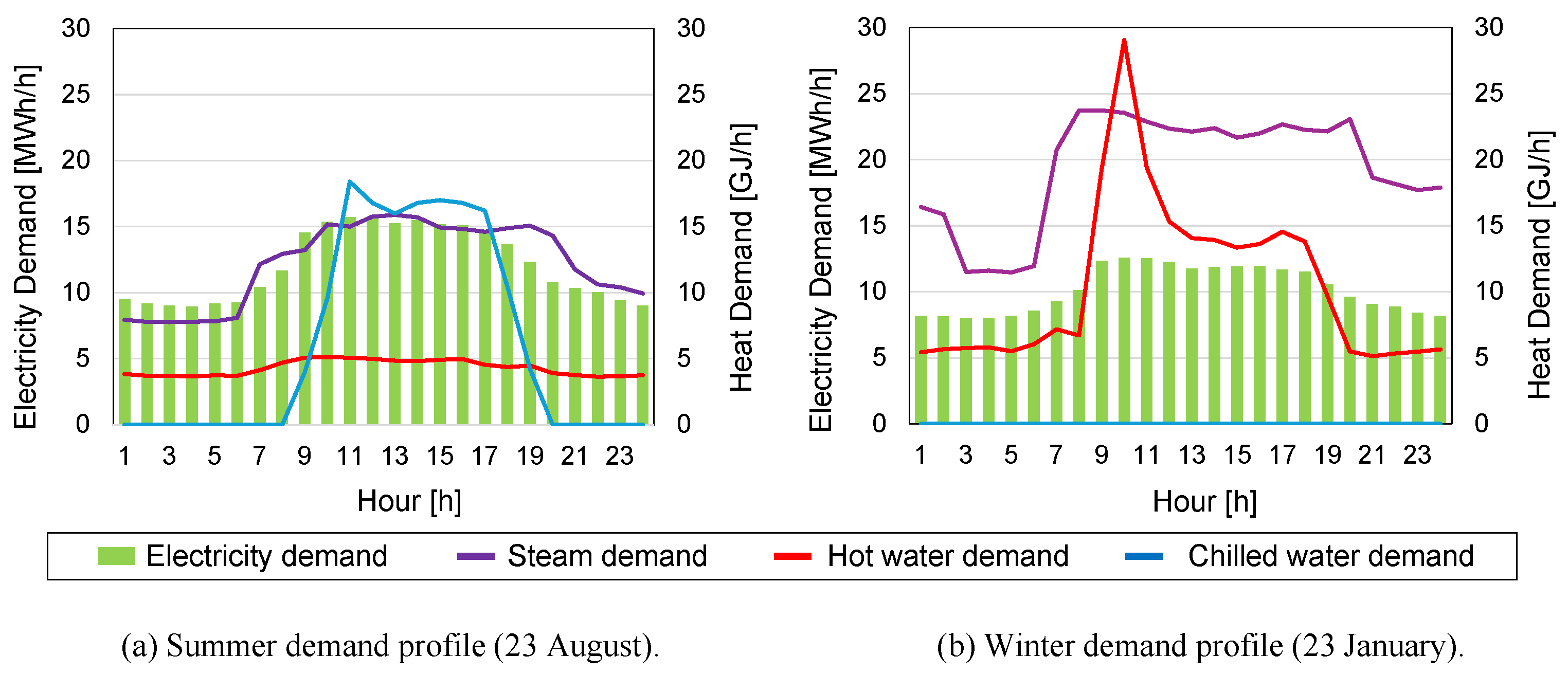 | Steam efficiency of AC [(MJ/h)/(MJ/h)] | 0.66 | Stored HW at hour h on day d in the ESM [MJ] | – | ||