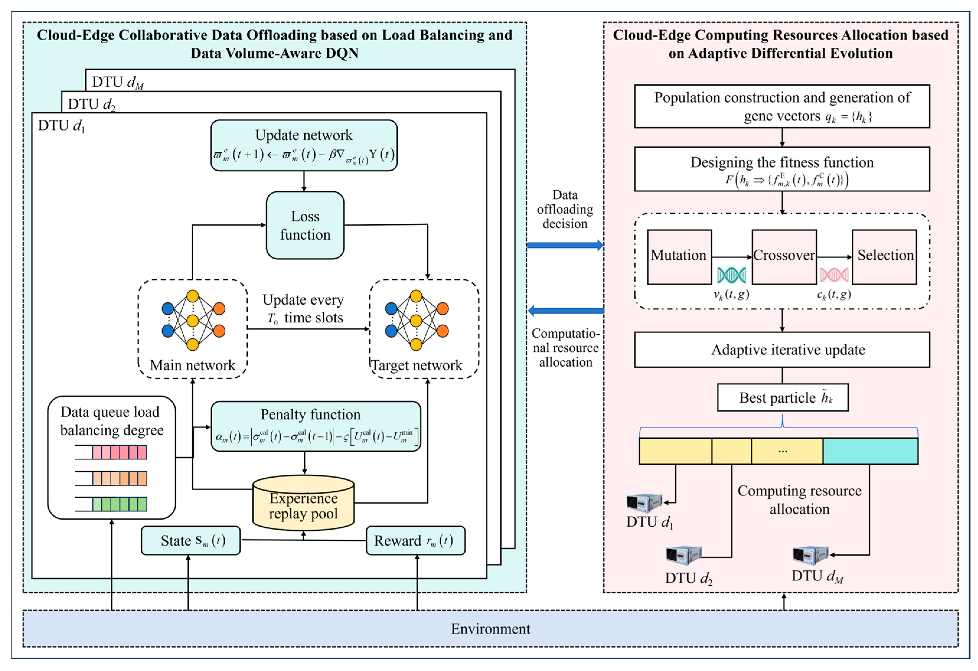 Cloud-edge collaborative data offloading based on load imbalance degree and data volume-aware DQN. A penalty function based on load fluctuations and data volume deficit is incorporated into the reward function design. This drives DQN to evolve toward suppressing the fluctuation of load imbalance degree across time slots and ensures the satisfaction of differentiated long-term data volume constraints.