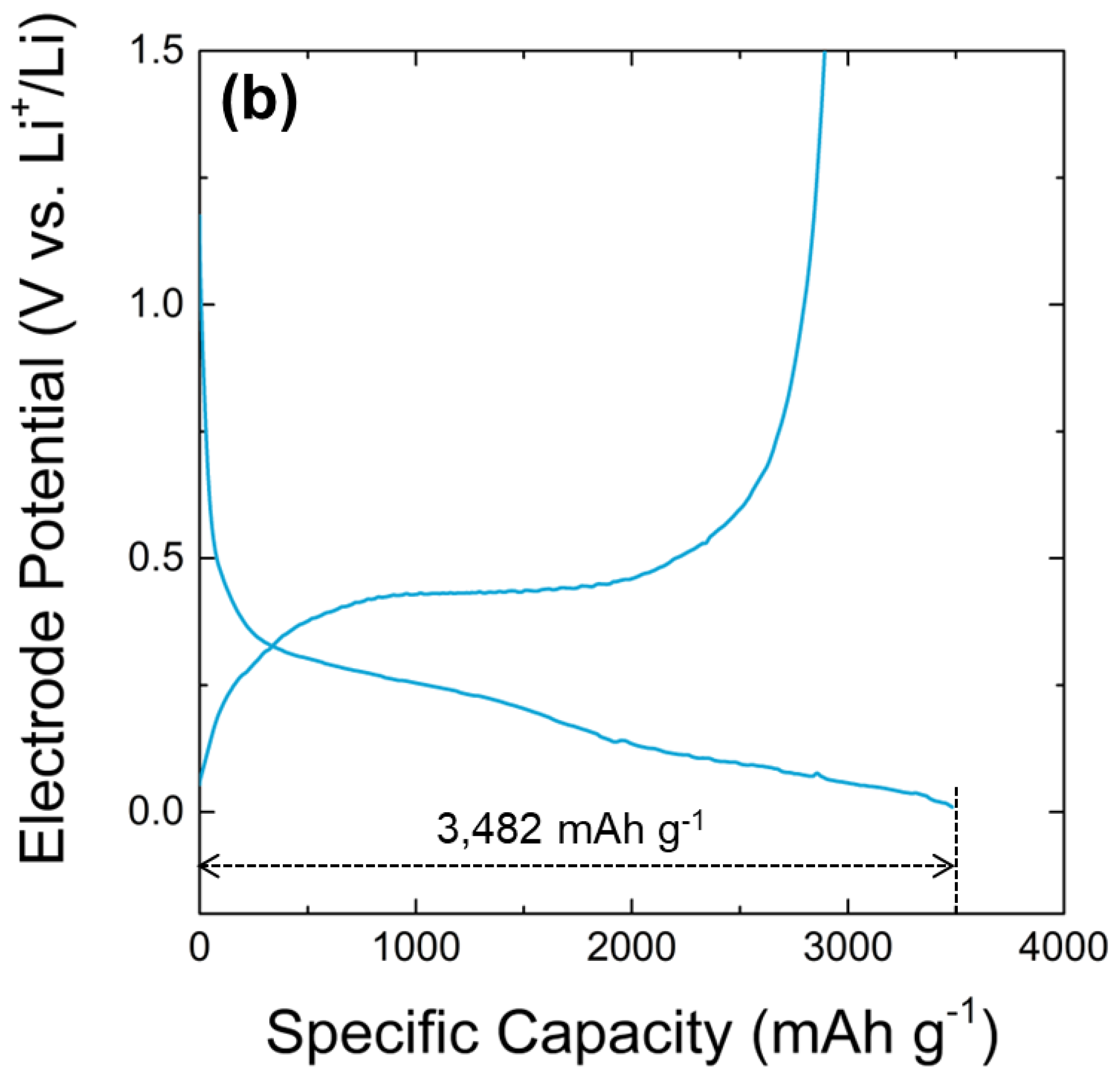 - Obrovac, M.N.; Krause, L.J. Reversible cycling of crystalline silicon powder. J. Electrochem. Soc. 2006, 154, A103. [Google Scholar] [CrossRef]