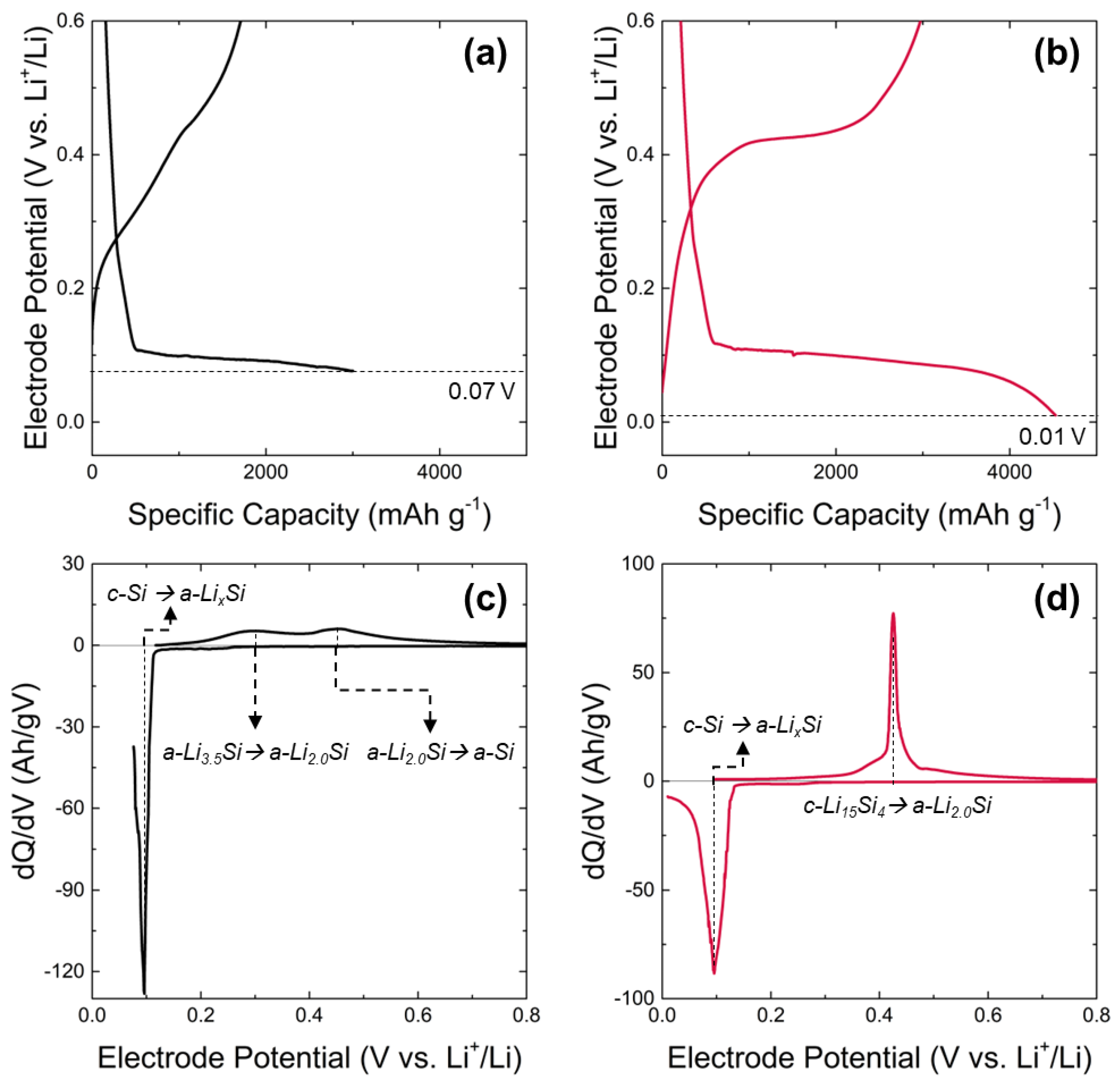 - Woodard, J.C.; Kalisvaart, W.P.; Sayed, S.Y.; Olsen, B.C.; Buriak, J.M. Beyond thin films: Clarifying the impact of c-Li15Si4 formation in thin film, nanoparticle, and porous Si electrodes. ACS Appl. Mater. Interfaces 2021, 13, 38147–38160. [Google Scholar] [CrossRef] [PubMed]