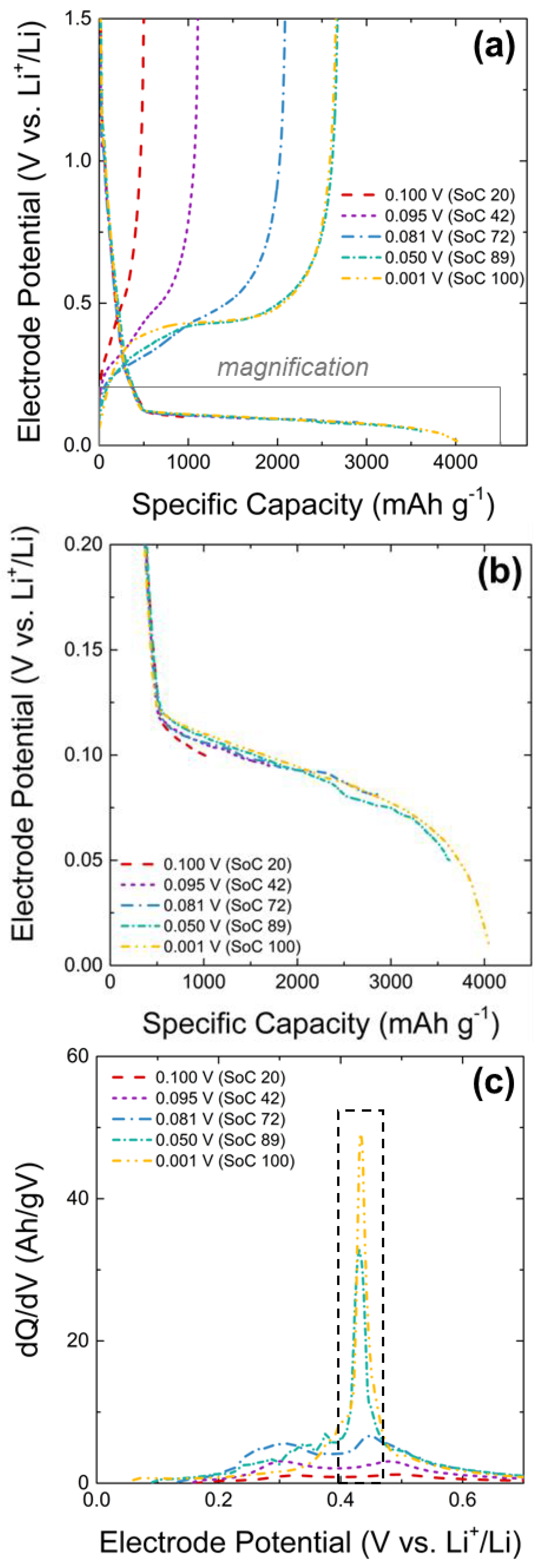- Tornheim, A.; Trask, S.E.; Zhang, Z. Communication—Effect of lower cutoff voltage on the 1st cycle performance of silicon electrodes. J. Electrochem. Soc. 2019, 166, A132. [Google Scholar] [CrossRef]