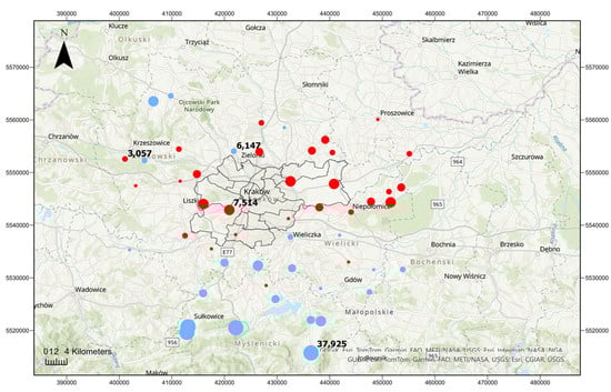 Air pollution poses a serious health risk, occurring at high levels in urban areas [1,2]. PM2.5 particulate matter has a decisive impact on air pollution [3,4,5]. City, regional and national authorities have been tackling this problem for years by implementing programmes to restrict the use of solid fuels, supporting the replacement of heat sources with less polluting ones, and providing subsidies to the poorest residents to cover their energy costs [6,7]. These efforts face various difficulties and do not always yield satisfactory results, but politicians, scientists and communities are becoming increasingly aware of the problem [8]. The problem also affects Kraków (southern Poland), where, despite radical legal measures (a ban on the use of solid fuels), the problem still occurs in the winter months, when high concentrations of particulate matter are recorded, “transported” from neighbouring municipalities.