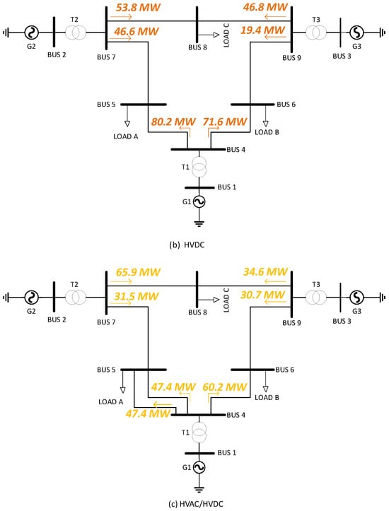 Hybrid HVAC/HVDC systems offer substantial technical and economic advantages for modern transmission planning. These configurations enable increased power transfer capability, reduced electrical losses, and improved integration of intermittent renewable energy sources. These benefits are particularly significant in long-distance corridors or in systems with high renewable penetration, where stability and power-flow control become more critical [11,12,13,14,15]. Multiple case studies in regions such as Europe, the Middle East, and Africa have demonstrated the technical and economic feasibility of hybrid networks. These projects indicate that combining HVAC and HVDC can accelerate the energy transition and modernize aging power systems while maintaining high levels of reliability and efficiency [12,14,15].