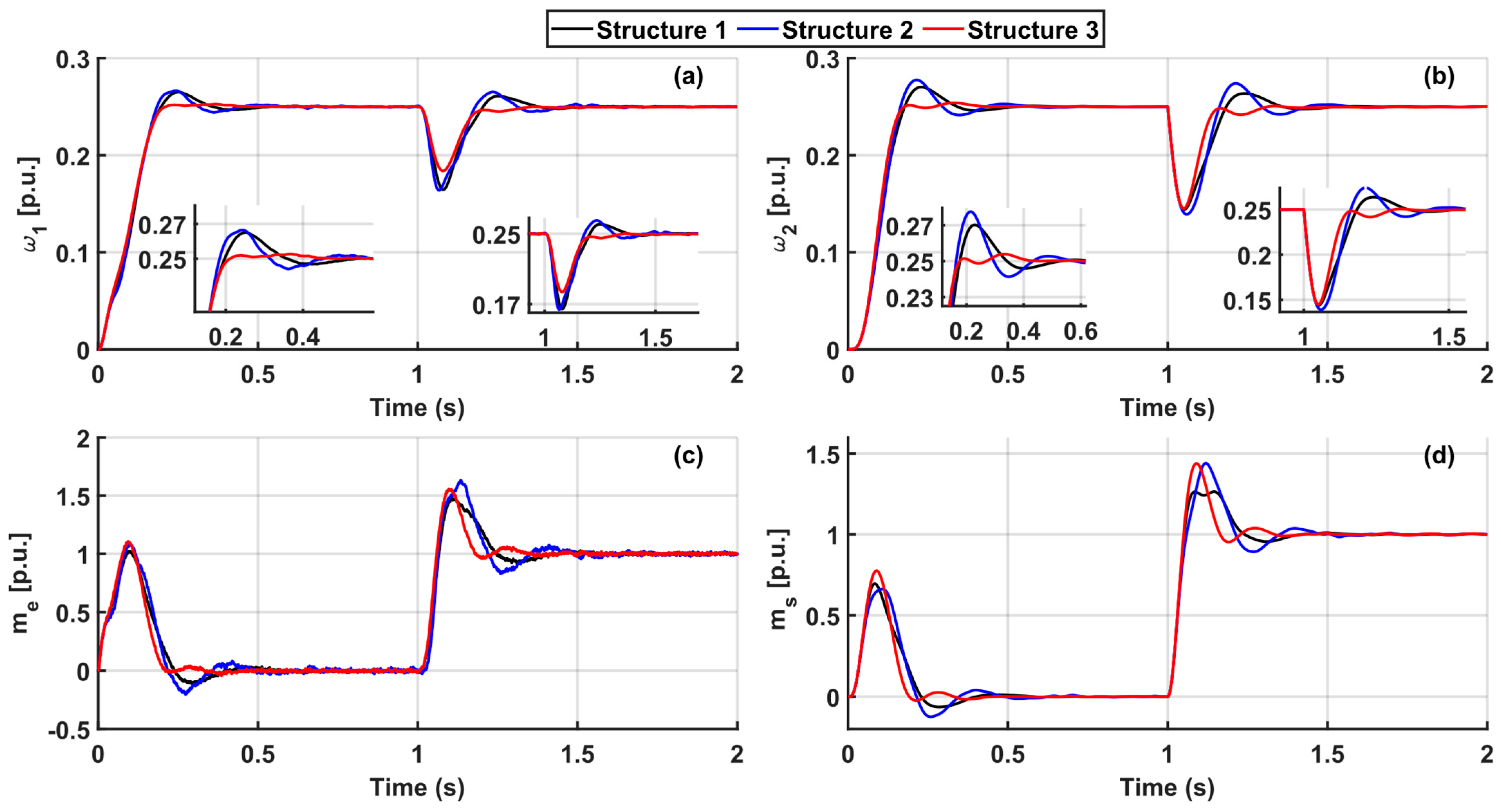 • Structure 1: Integrates feedback from both the first and second derivative of the torsional torque to the electromagnetic torque node.