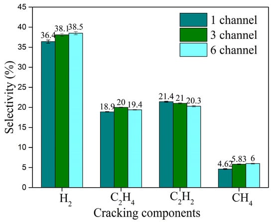Effect of the number of discharge channels on the selectivity of the cracking products.
