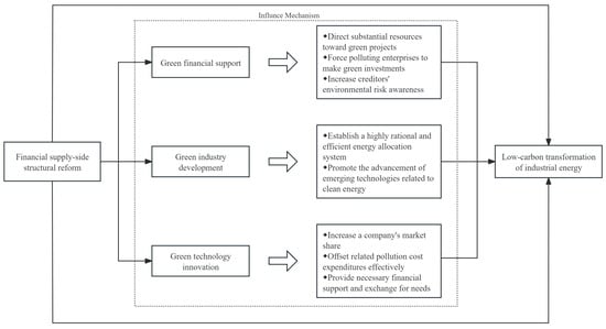 Financial supply side structural reform (FSSR) serves as a key for advancing the low-carbon transformation of industrial energy (LTIE) and supporting the dual carbon strategic goals. By using provincial panel data from China for the period of 2008–2022 and leveraging the national financial comprehensive reform pilot zones as a quasi-natural experiment, this study uses the difference-in-differences method to examine empirically the effect of FSSR on the LTIE and the underlying mechanisms. Research findings indicate that, first, FSSR can significantly advance the LTIE, which remained unchanged after other policies, omitted variables, and other potential influencing factors were controlled. Second, the mechanism tests indicate that FSSR can drive the LTIE by increasing green financial support, fostering green industrial development, and promoting green technological innovation. Third, the heterogeneity tests reveal that the benchmark effect is pronounced in regions with weak environmental regulation and a low level of financial development. This study provides theoretical and empirical evidence to understand the crucial role of FSSR in advancing the LTIE and insights for relevant policy formulation.
