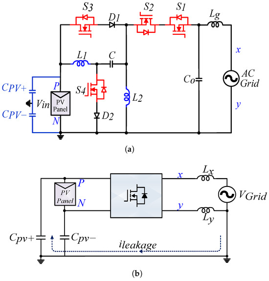 Power inverters are extensively utilized in renewable energy applications and can be broadly classified as voltage-source inverters (VSIs) [1] and current-source inverters (CSIs) [2]. Unlike CSIs, VSIs are more commonly employed in grid-connected photovoltaic (PV) applications due to their stable power-injection capability and relatively simple control techniques. VSIs are further classified as isolated and non-isolated inverters. Isolated inverters are effective in mitigating the leakage current. However, they require either high-frequency (HF) or low-frequency (LF) transformers [3,4,5], which increase system size and cost while reducing conversion efficiency and power density.