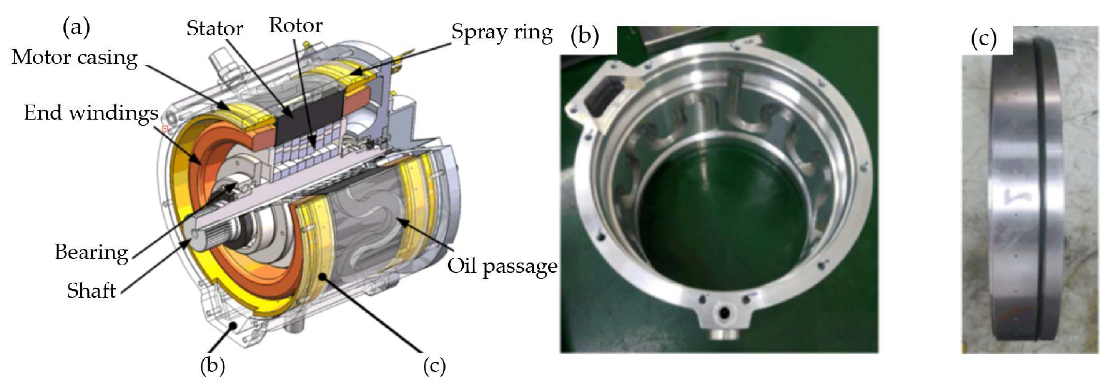 - Guo, F.; Zhang, C. Oil cooling method for internal heat sources in the outer rotor hub motor of electric vehicle and thermal characteristics research. Energies 2024, 17, 6312. [Google Scholar] [CrossRef]