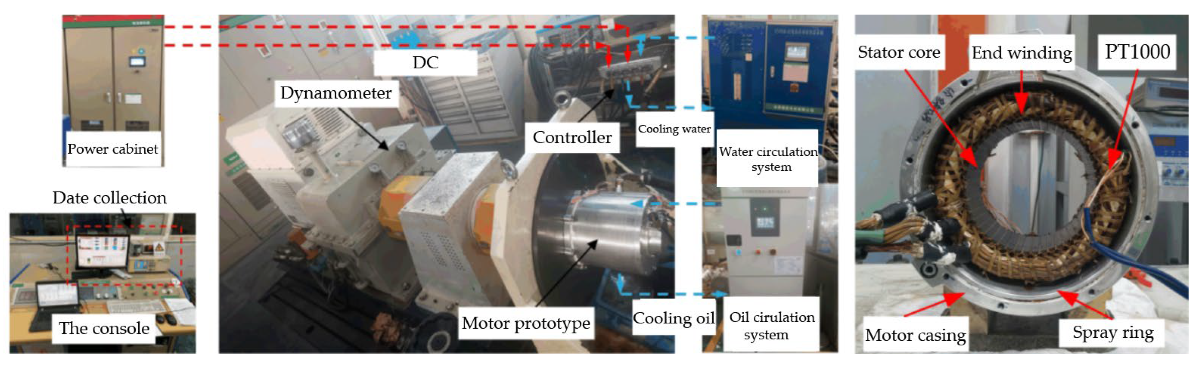 - Yang, C.; Cai, W.; Xie, Y.; Shao, B.C. Experiment and simulation study on the cooling performance of oil-cooling PMSM with Hairpin Winding. Machines 2024, 12, 119. [Google Scholar] [CrossRef]