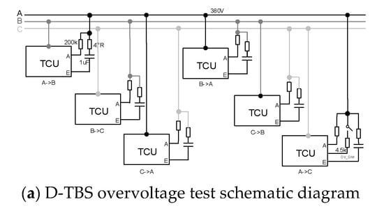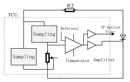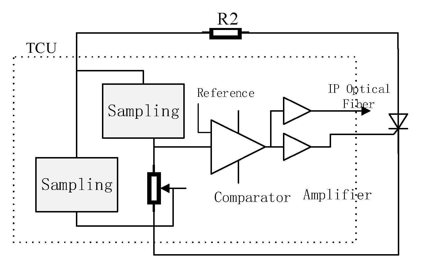 The principle is to connect a small resistance-value resistor in parallel to a normal external large resistor to obtain a large current through short-term conduction so that the TCU simulates an overvoltage fault at low voltage. The D-TBS controller determines whether there is an overvoltage fault in the TCU unit by monitoring the number of indication pulses (IPs) per cycle of the TCU. The TCU IP signal indication waveform and test results are shown in