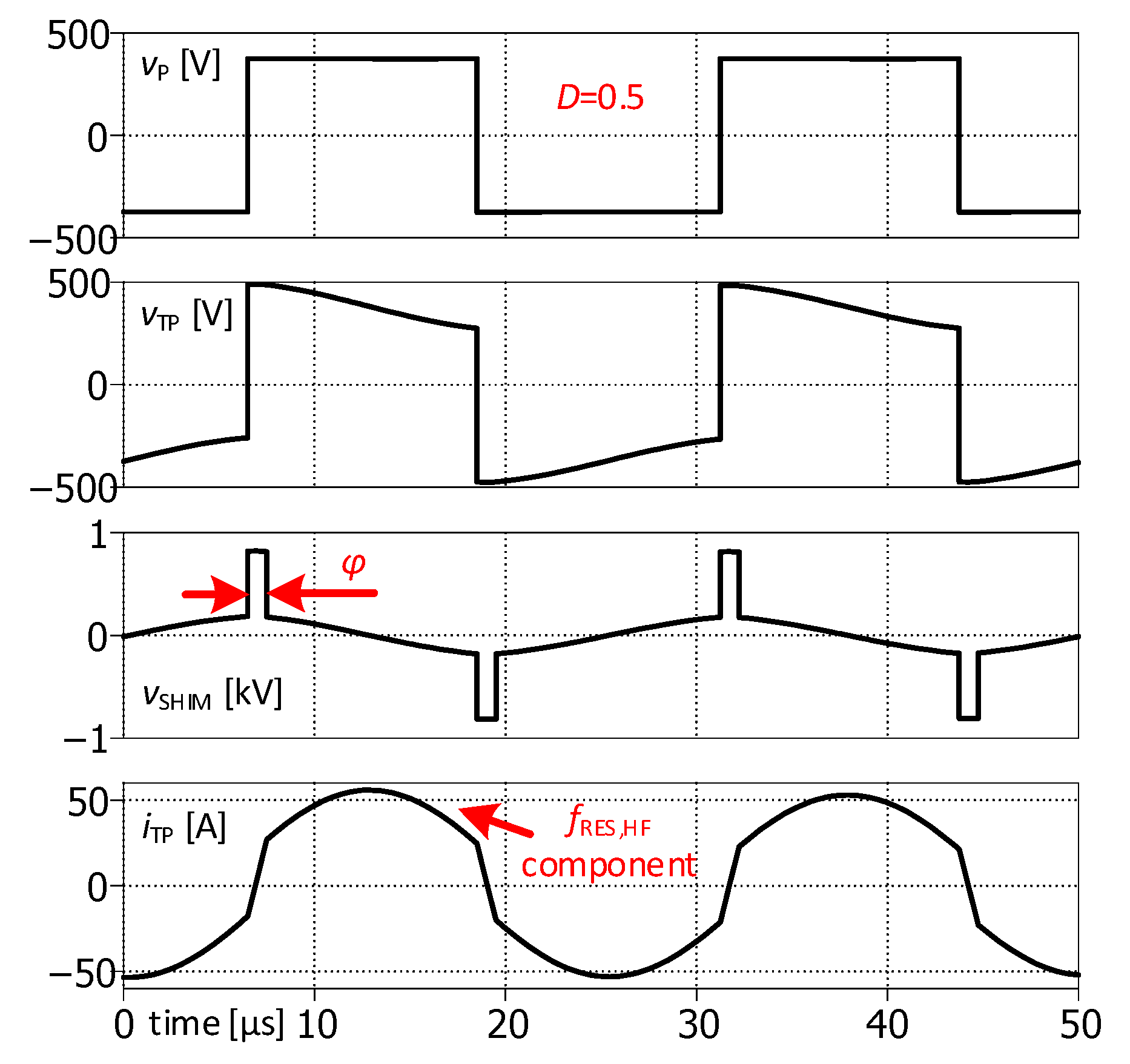 D = 0.5. The parasitic HF resonant component defined by (11), which is present in the transformer current