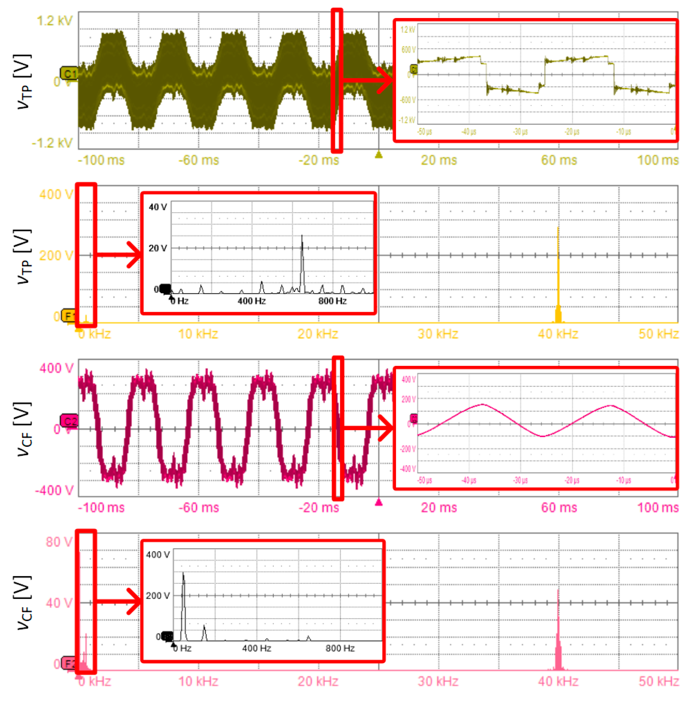 vCF, respectively—during steady-state operation of the DAM converter with a rated power of 20 kW. The capacitor voltage