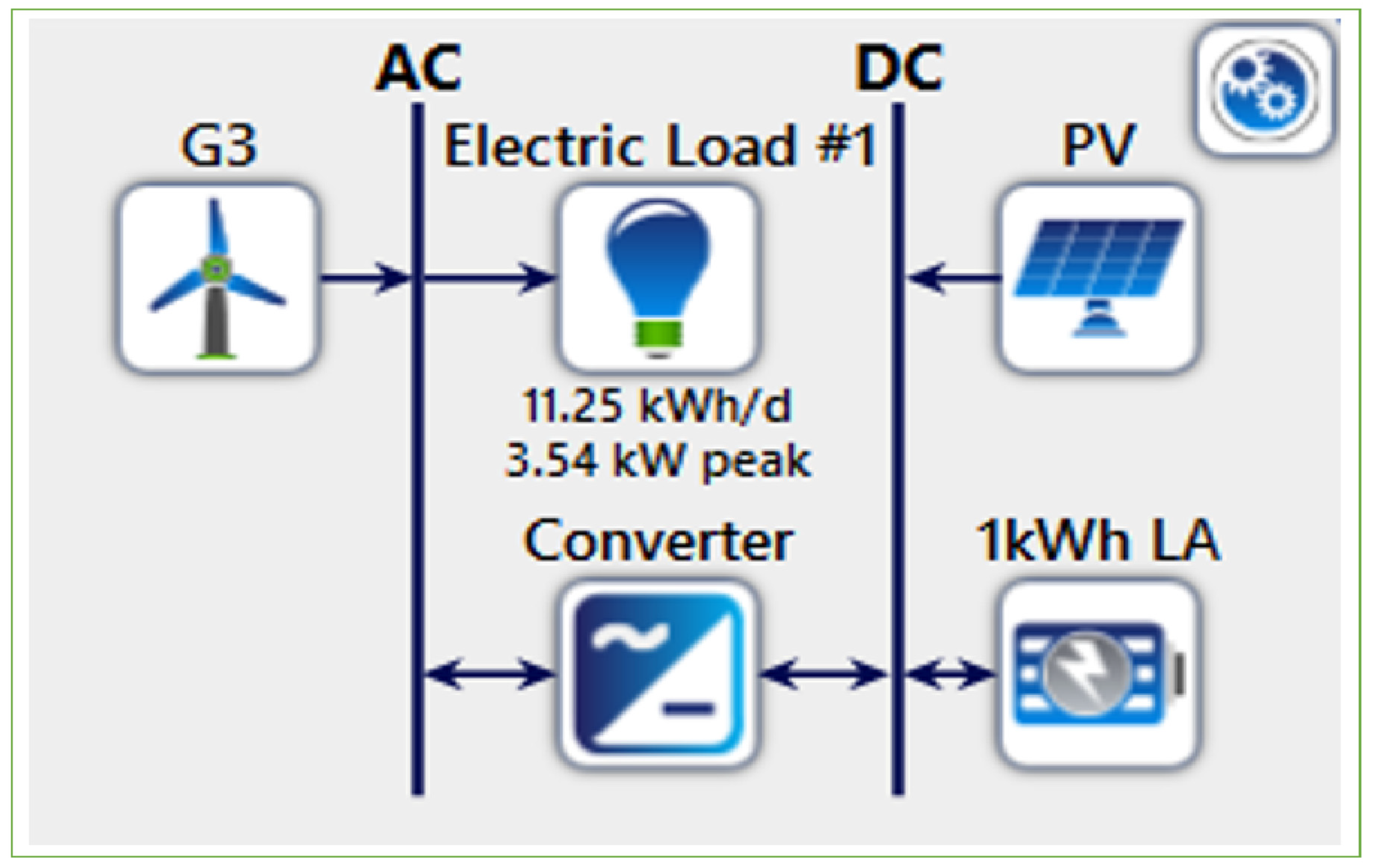 - Optimisation of hybrid energy system (HES): HOMER software can simulate hundreds of thousands of feasible energy components such as PV, wind, battery, and converter components. It sizes the components to establish optimal configurations and to meet the specific load profile of a given application.