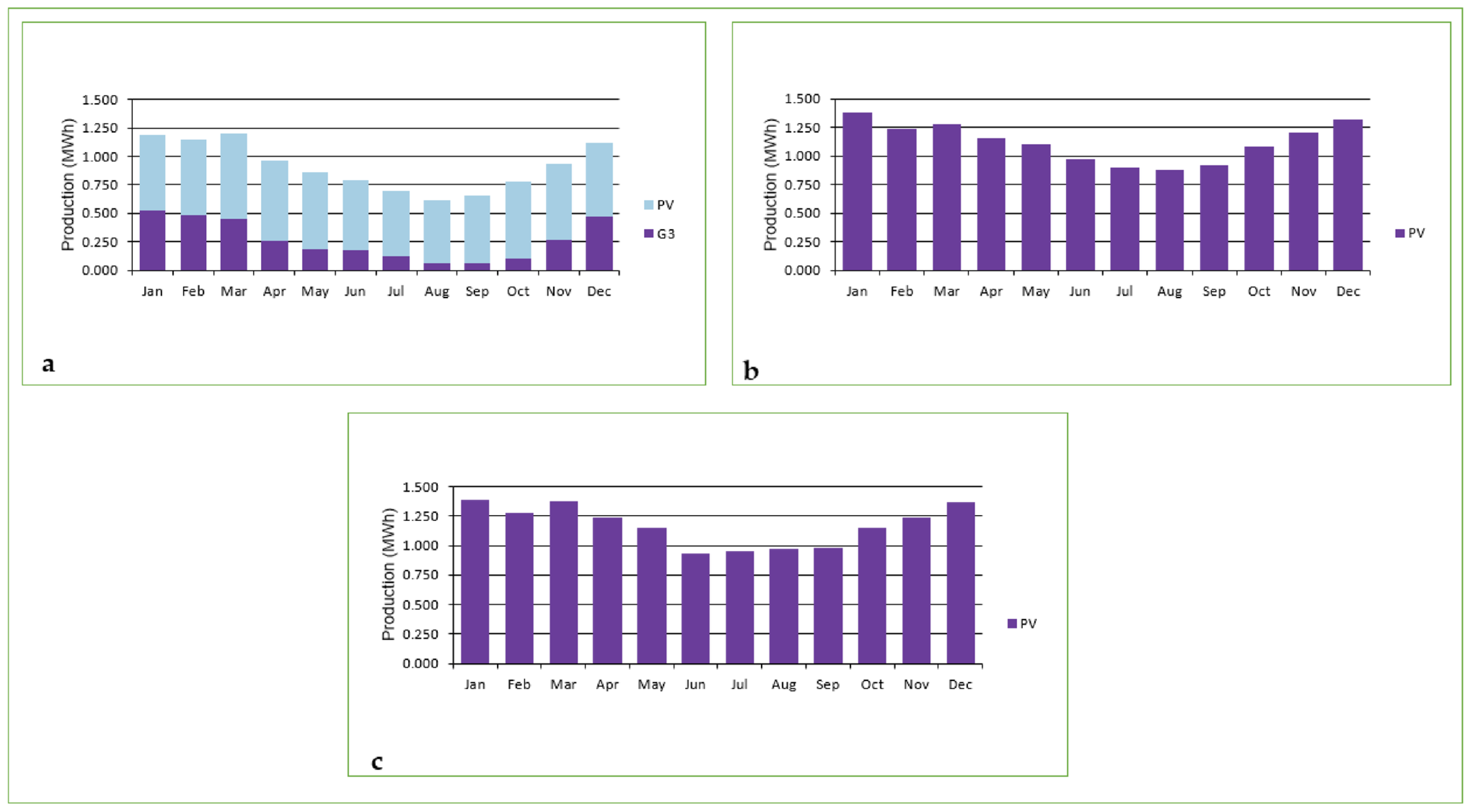 | Total production | 7795 | 13,438 | 14,031 | kWh/year |