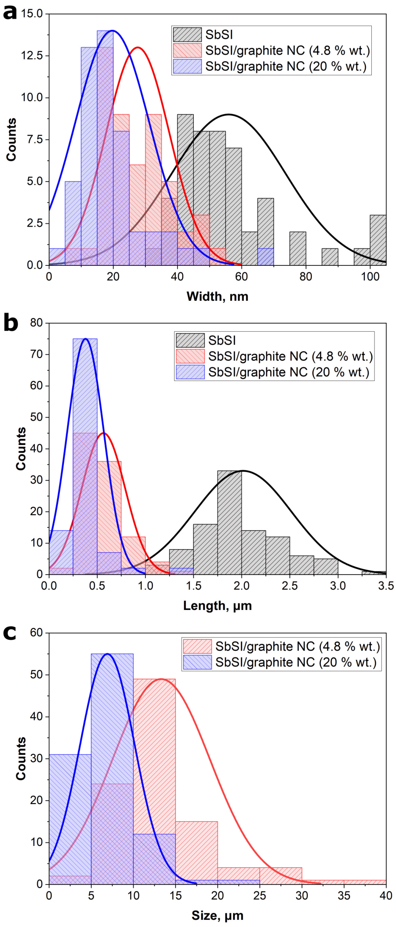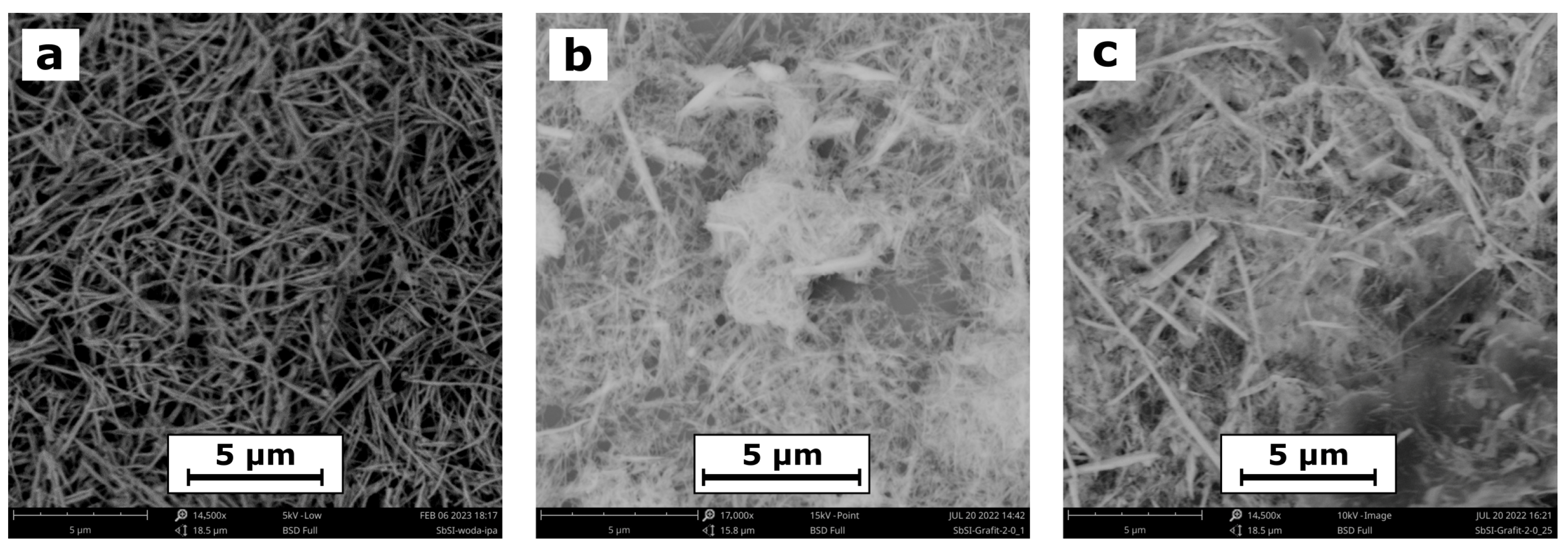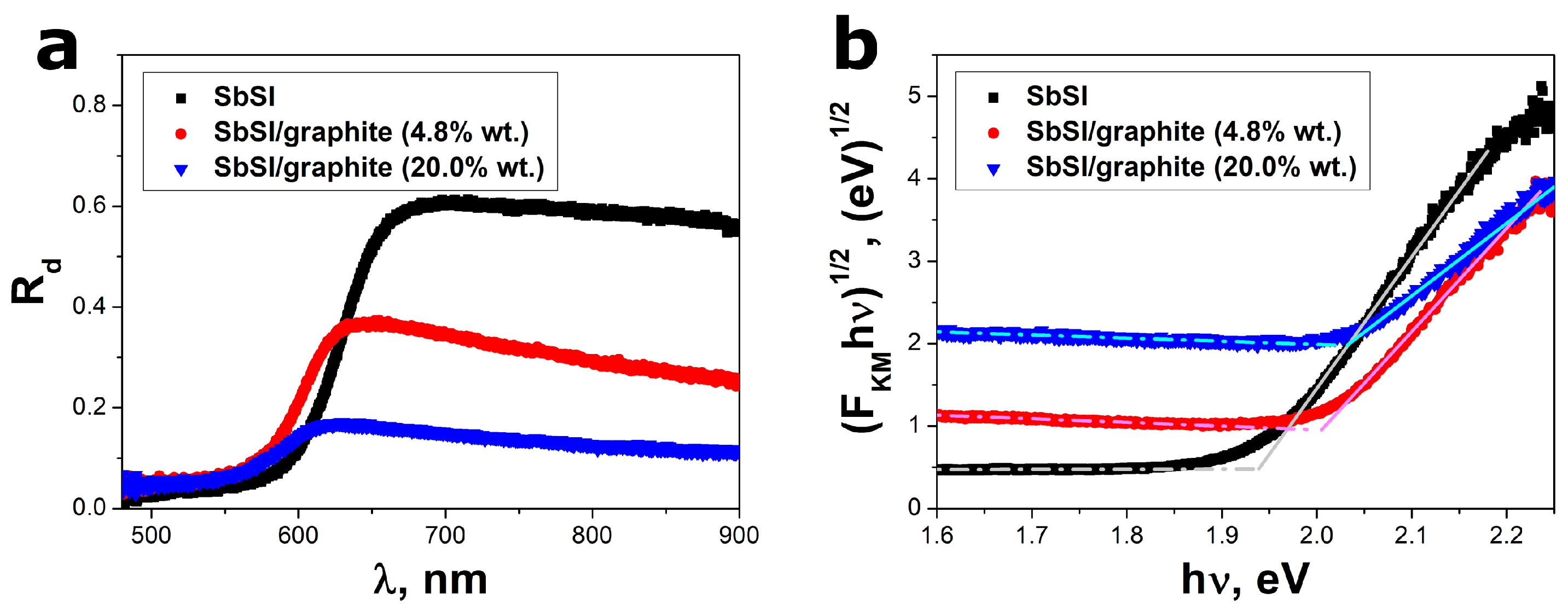 2.2. Characterization of SbSI/Graphite Nanocomposite Morphology, Chemical Composition, and Optical Properties