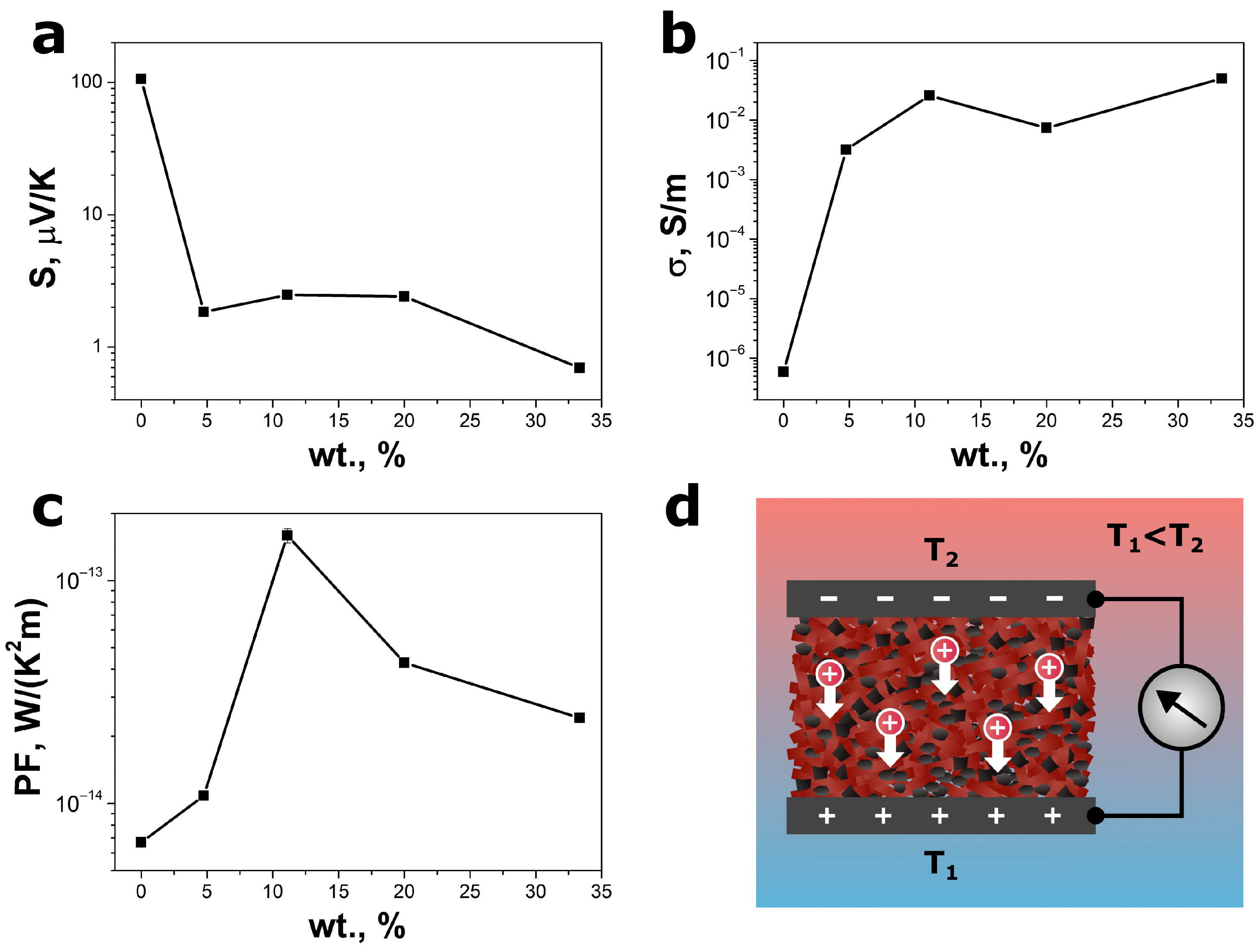| Graphite Concentration, wt.% | S, µV/K | σ, mS/m | PF, pW/(K2∙m) |