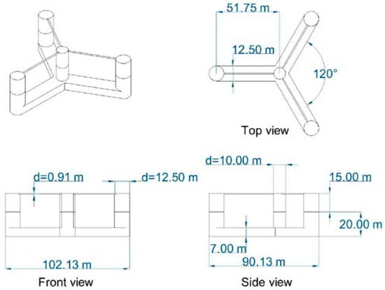 Figure 2. Detailed dimensions of the semi-submersible foundation [21].