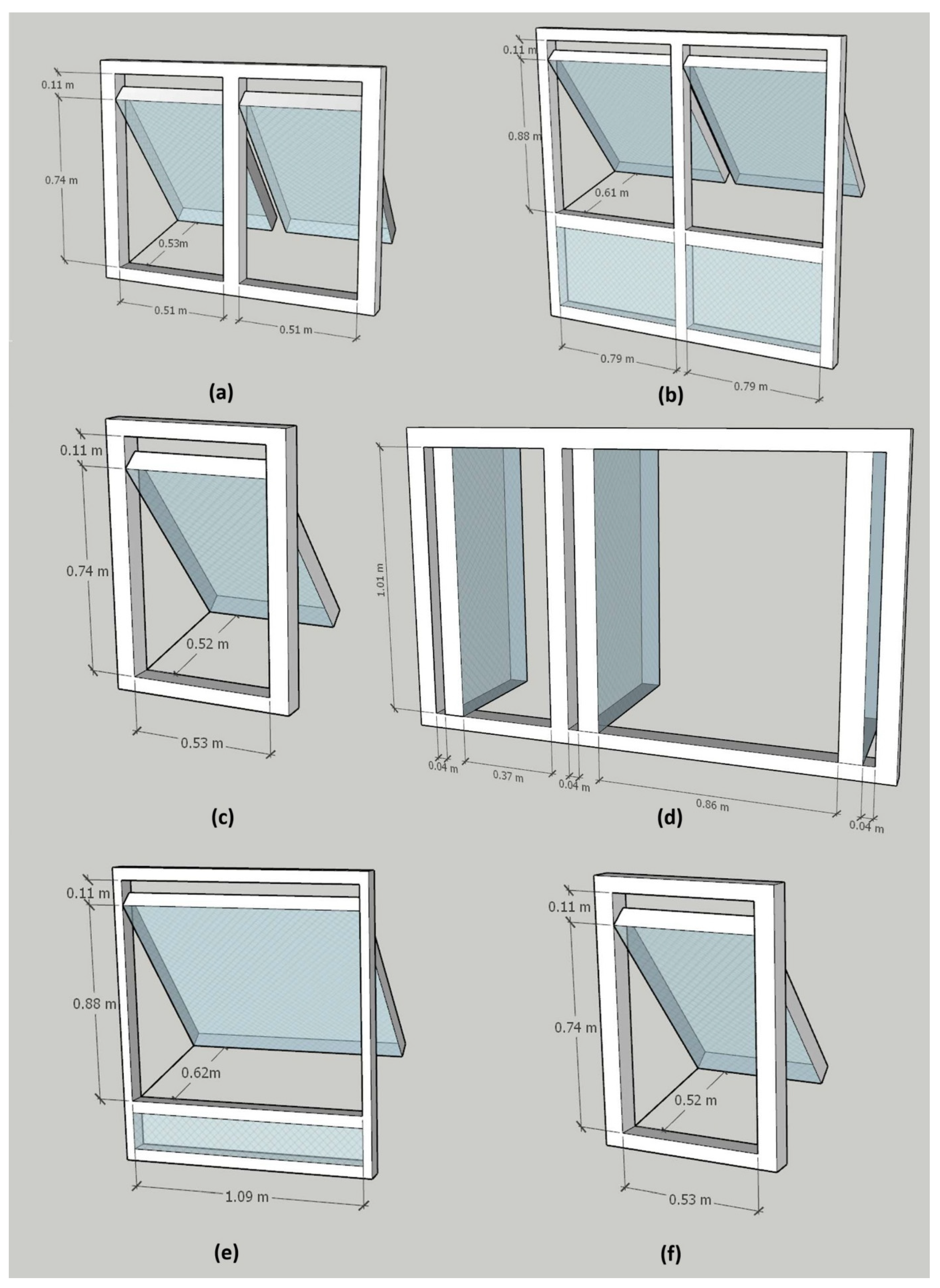 The second limitation relates to measurement resolution. Single-point velocity measurements did not fully capture vertical variations across openings. Employing multiple probes at different heights—particularly for top-hung windows—would improve accuracy and representativeness. Whilst having multiple velocity measurements per window would have been preferable, it was not possible to add more hot-wire sensors due to their significant cost in this phase of this research. Nevertheless, we believe that the current results are a good starting point for future studies.