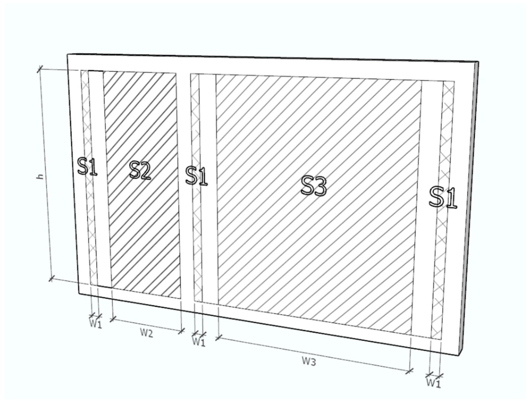 In this study, the openable areas of all selected windows were measured directly on site under test conditions. To obtain accurate values, the windows were grouped into three types: top-hung windows without a central mullion (bathroom and WC), top-hung windows with a central mullion (kitchen and living room), and side-hung windows (bedroom 1). Each window opening was subdivided into smaller geometric sections based on its tilt and shape, and the total openable area was obtained by summing these components. This method aligns with established geometric approaches for determining the effective flow area of real windows under buoyancy-driven ventilation [