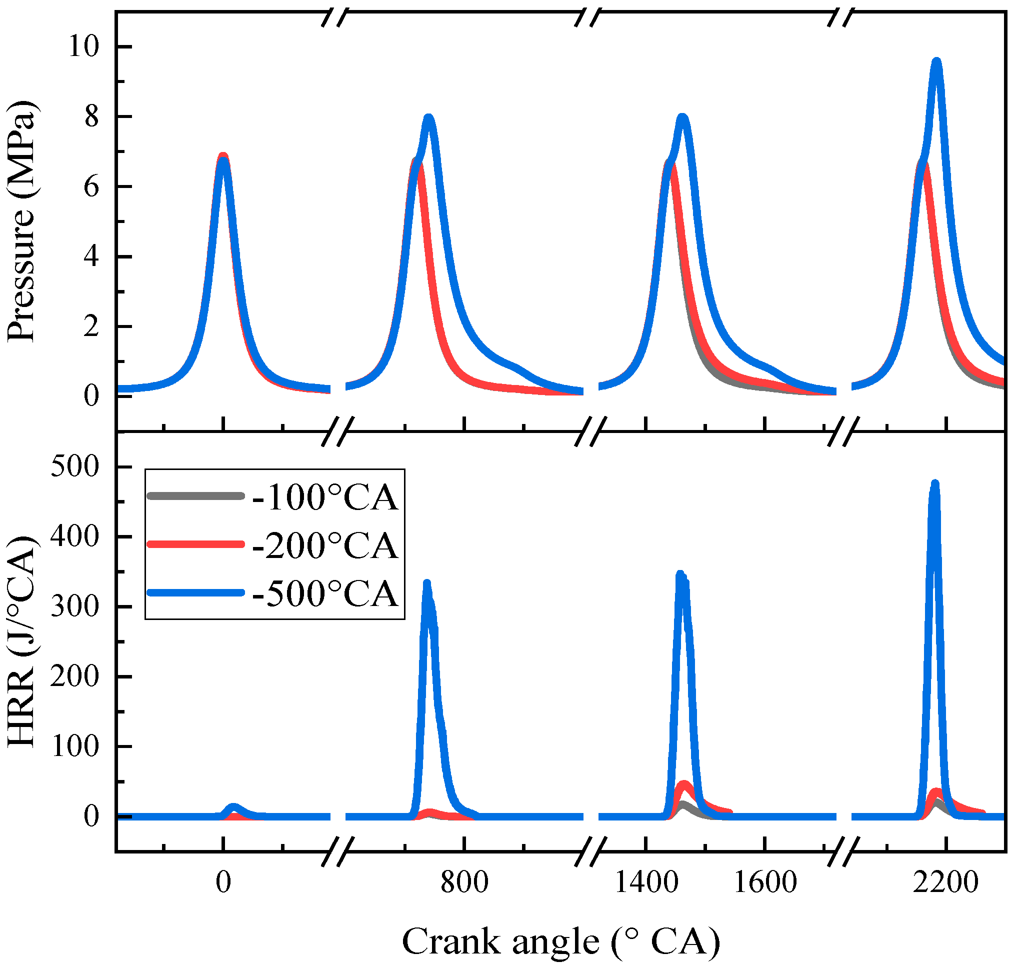 - Chen, W.; Yang, X.; Zuo, Q.; Wang, H.; Ning, D.; Kou, C.; Zhang, Y.; Zhu, G. Combustion Characteristics and Performance Analysis of a Heavy-Fuel Rotary Engine by Designing Fuel Injection Position. Appl. Therm. Eng. 2024, 247, 123021. [Google Scholar] [CrossRef]
