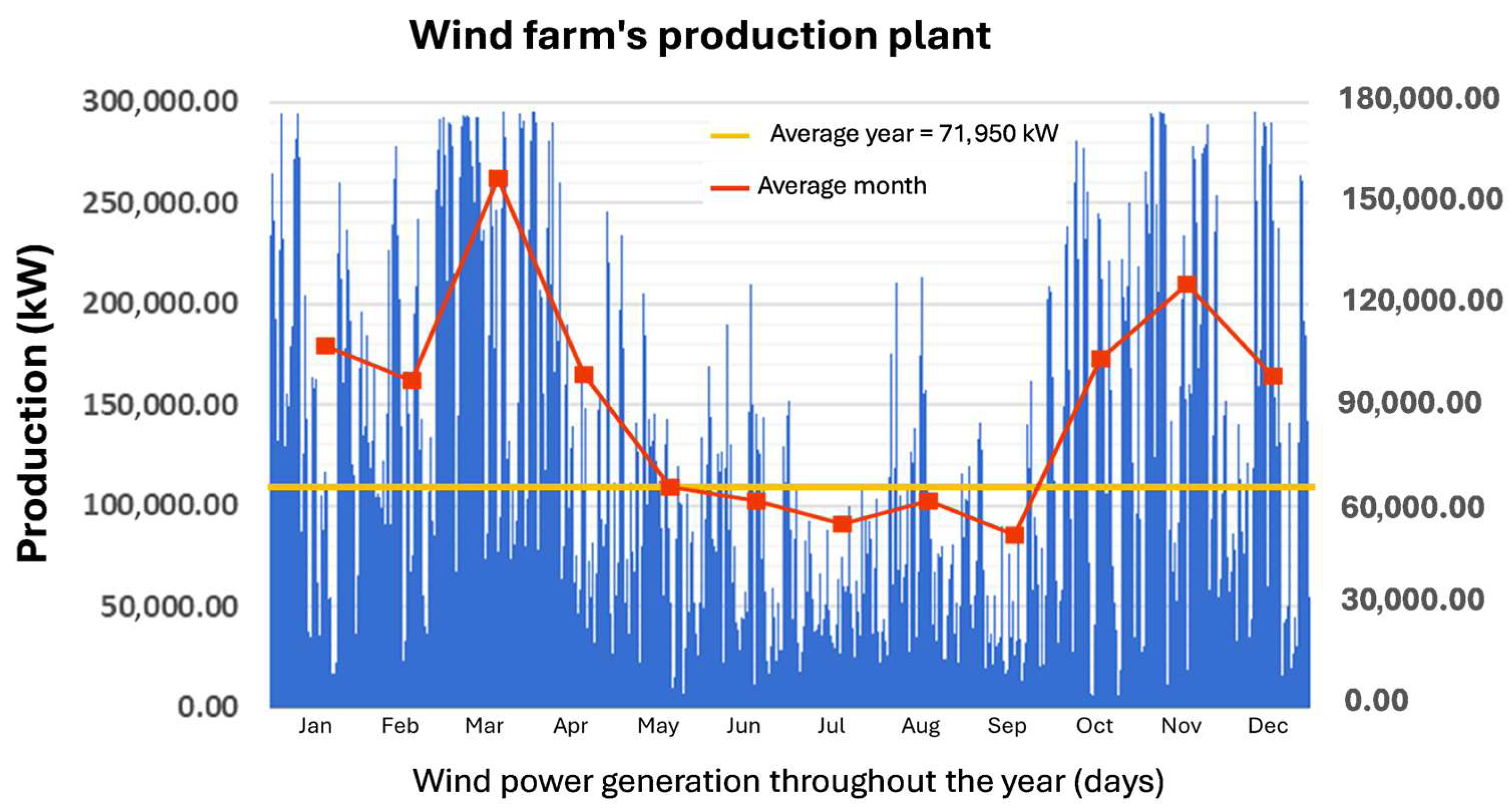 - Based on the data collected, it can also be concluded that the combined energy produced by the wind farm rarely exceeds the limits for export to the national grid over the course of a year. The average curtailment rate is around 2.5% of the total energy produced and is in line with European renewable energy projects [69] in the Nordic energy system [70] and with wind curtailment in the US, Canada, and China [71]. These are also in line with the results obtained by the system dynamics model developed by [72], which estimates a reduction of between 500 and 3000 GWh by 2030, i.e., a curtailment between 2.5 and 14%.