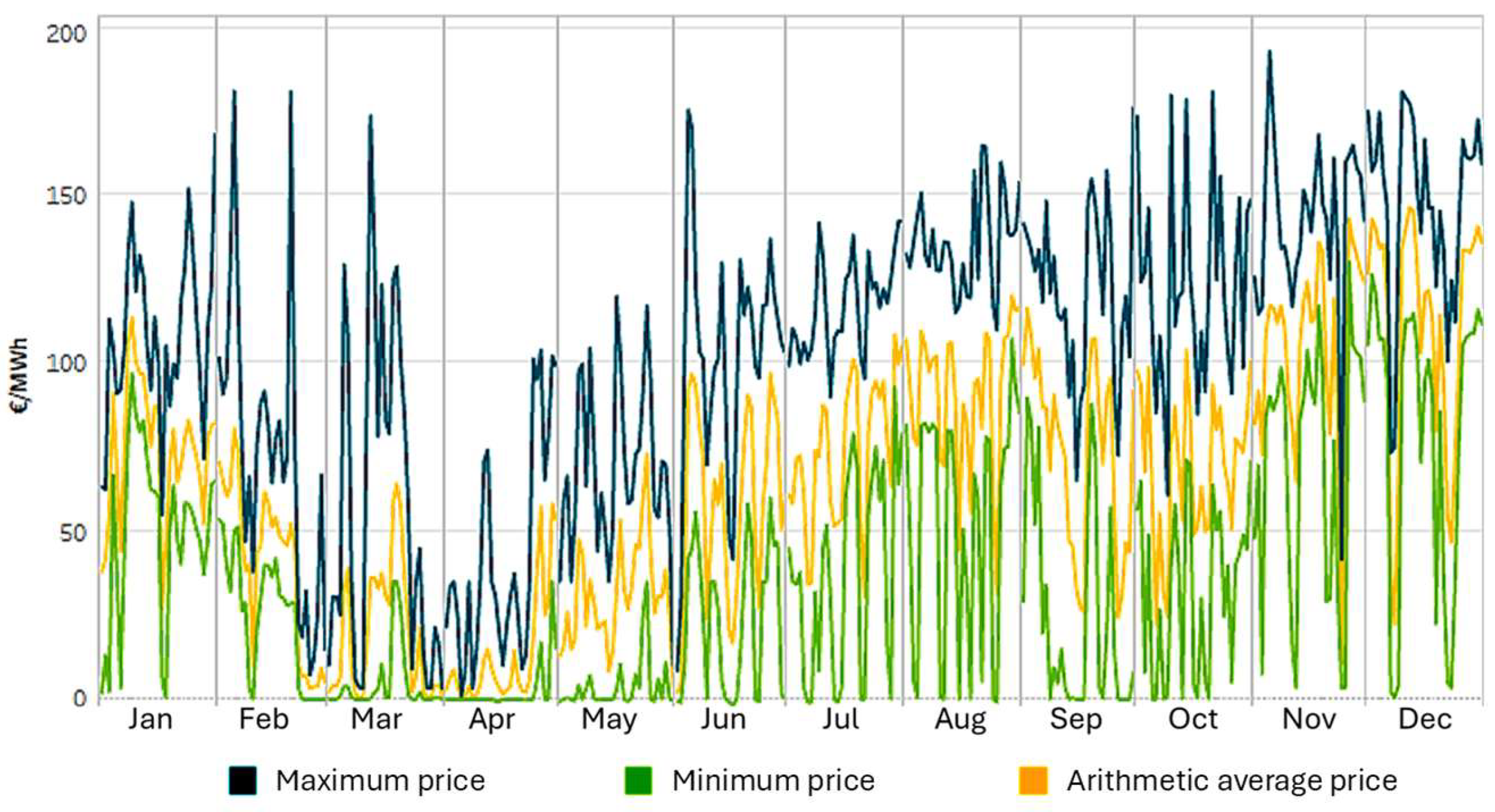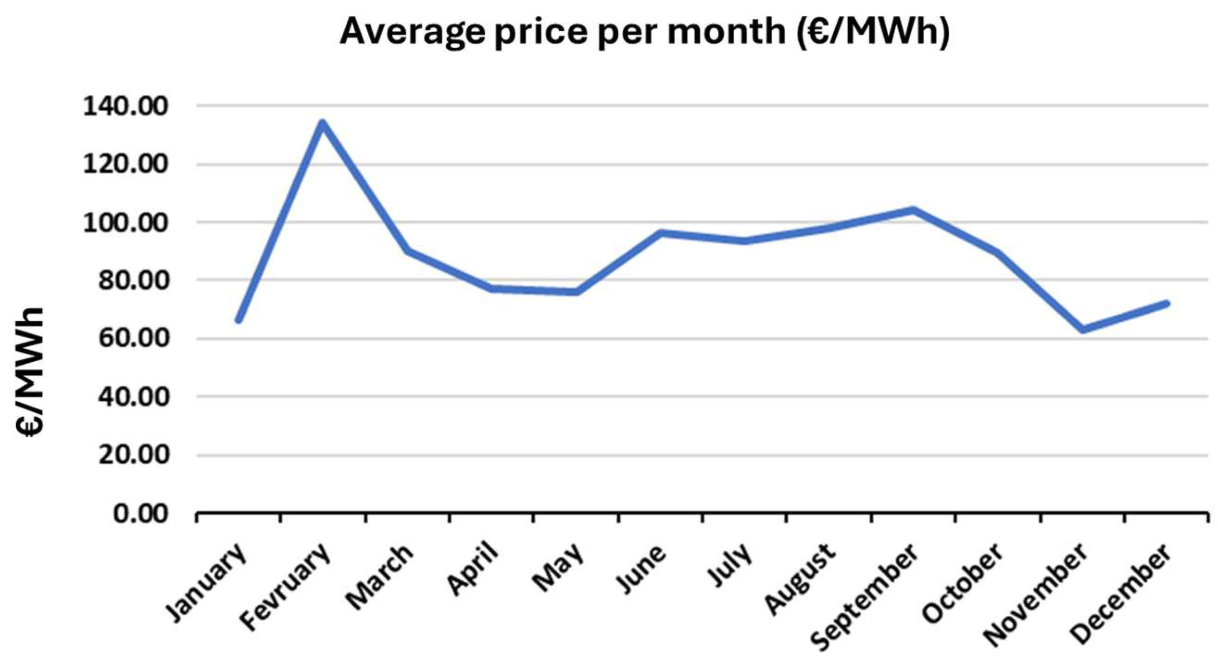 | Price (€/MWh) | Jan | Feb | Mar | Apr | May | Jun | Jul | Aug | Sep | Oct | Nov | Dec |
