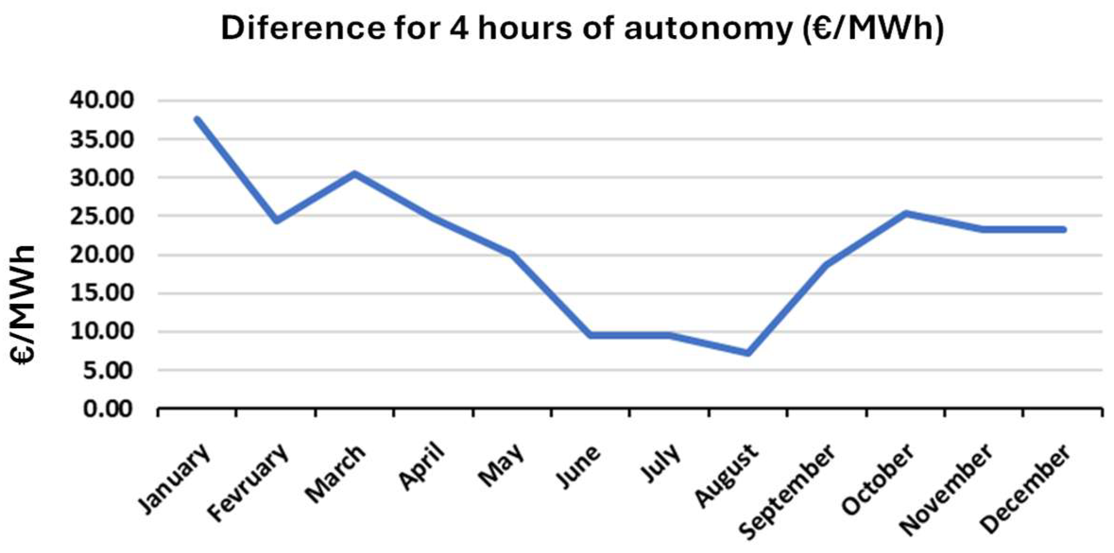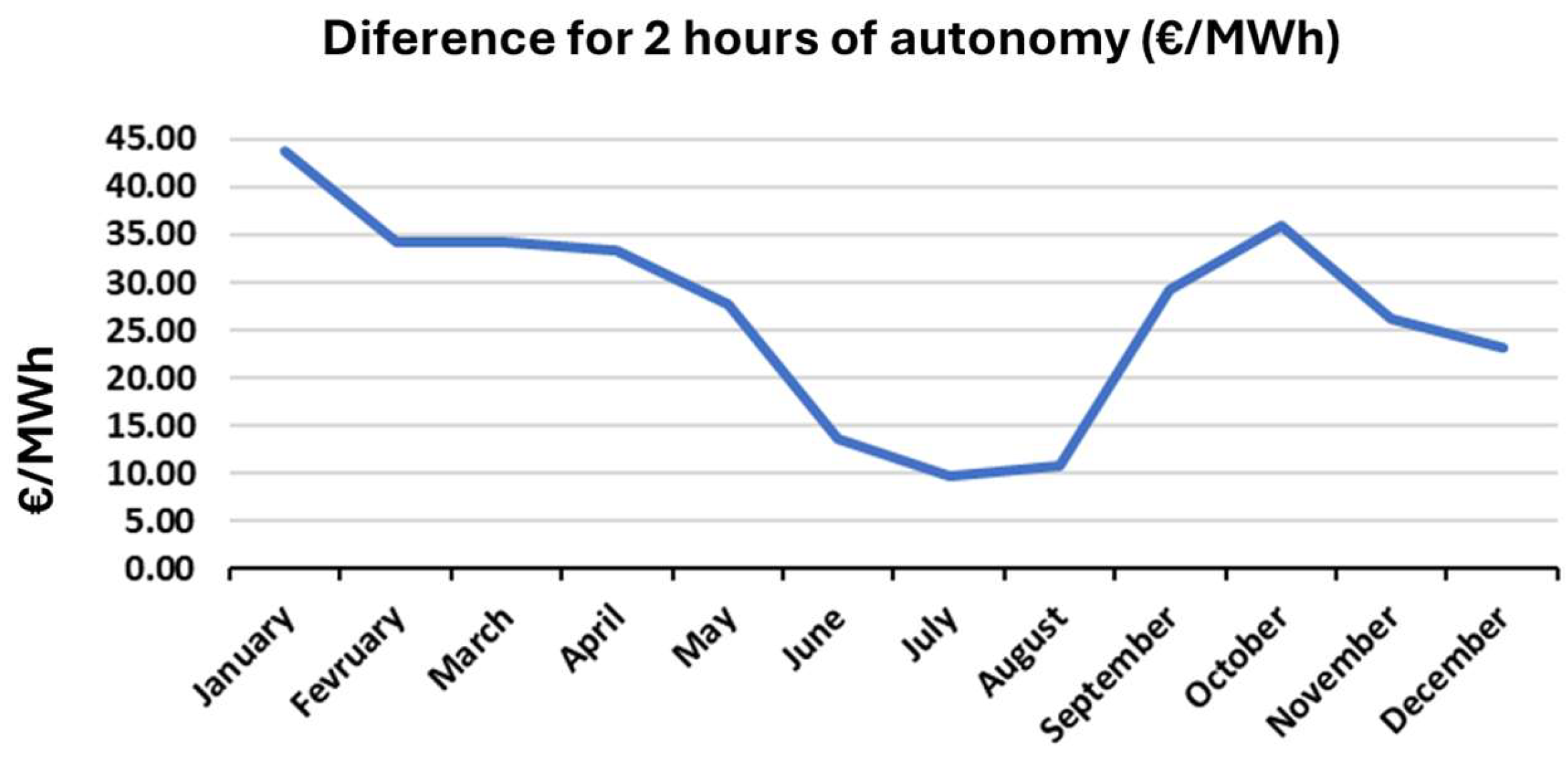 | Battery Autonomy | Average Monthly Profit per Discharge (€/MWh) | Curtailment/Price Arbitrage Profits (€) |