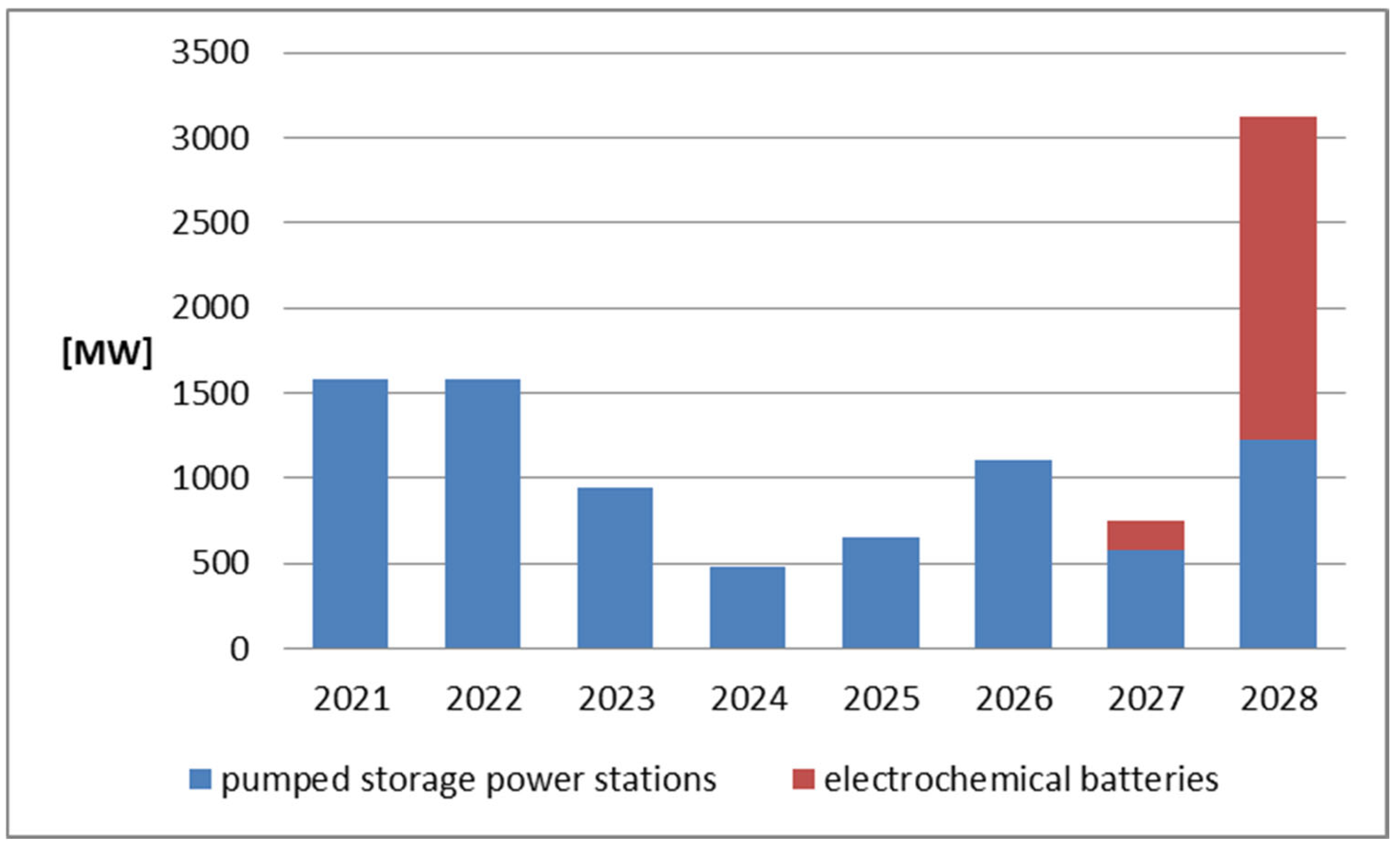 - Adamska, B.; Kopeć, S.; Lach, Ł.; Szczeciński, P.; Wrocławski, M. Wpływ rozbudowy infrastruktury magazynów energii na rozwój gospodarczy w Polsce—Prognoza do 2040 roku. Analizy AGH. Komunikat 2/2022. 2022. Available online: https://psme.org.pl/wp-content/uploads/2024/03/RAPORT_PSME_AGH.pdf (accessed on 22 December 2025).