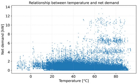 Net demand exhibits a strong negative correlation with PV generation and a positive correlation with temperature, reflecting clear nonlinear relationships between consumption patterns and environmental conditions. These dependencies highlight that residential energy variables are not independent but instead share an underlying temporal structure. This directly relates to the modelling gap identified in earlier sections, where existing approaches often treat net-load, PV output, and EV charging as separate tasks despite their coupled behaviour. In this context, the observed correlation patterns provide empirical support for RQ1, which examines whether a joint learning framework can better capture these shared dynamics. By exploiting such cross-variable relationships, a multi-task approach is well positioned to represent the intertwined drivers of residential demand more effectively than single-output models.