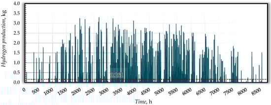 The hourly mass flow rate of the produced hydrogen, assuming the utilization of surplus electrical energy Esur,t, is calculated as follows [29]: